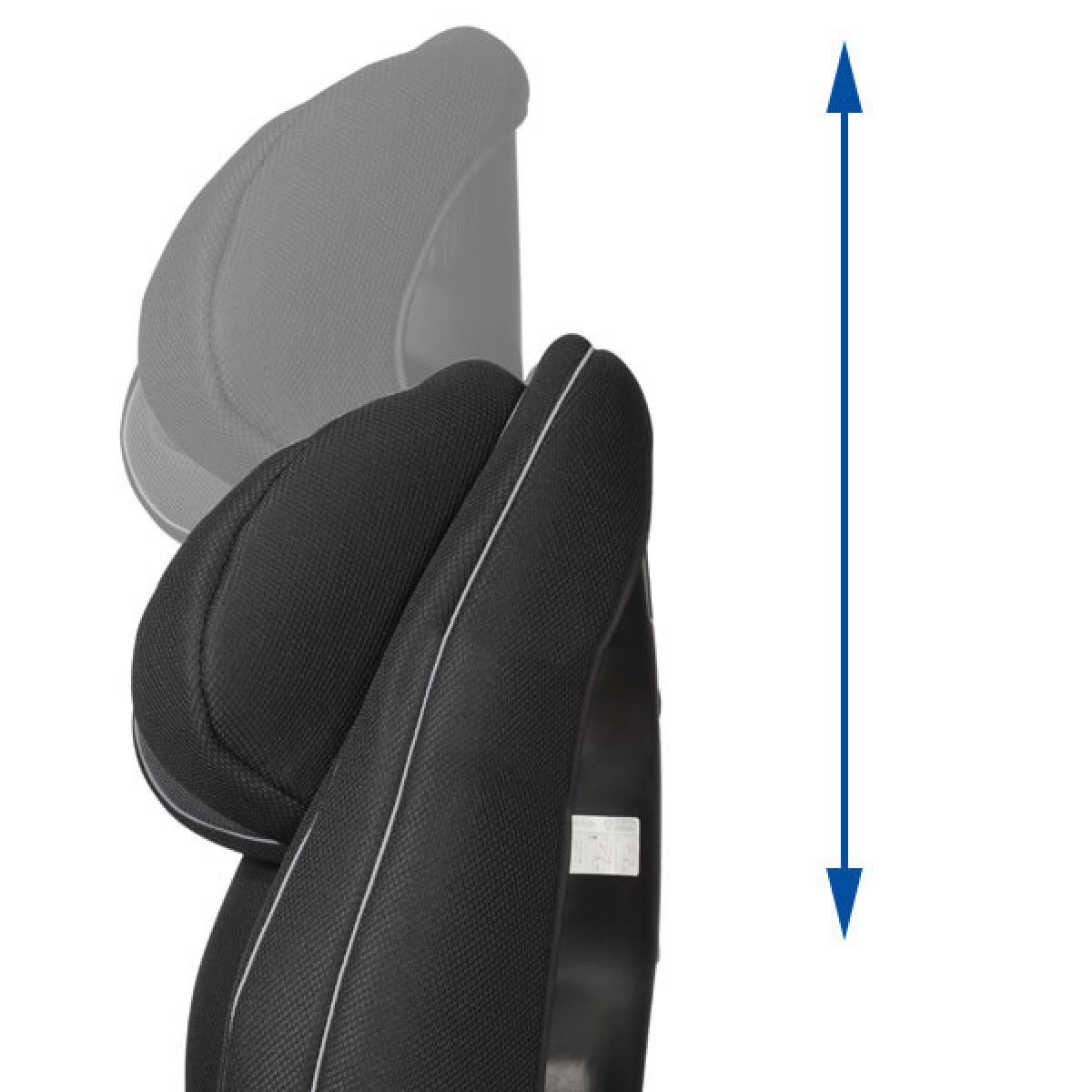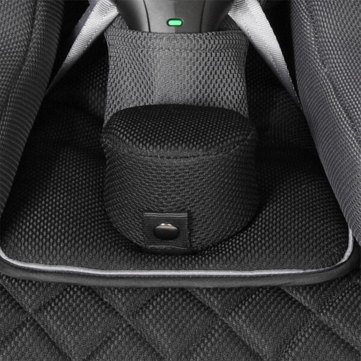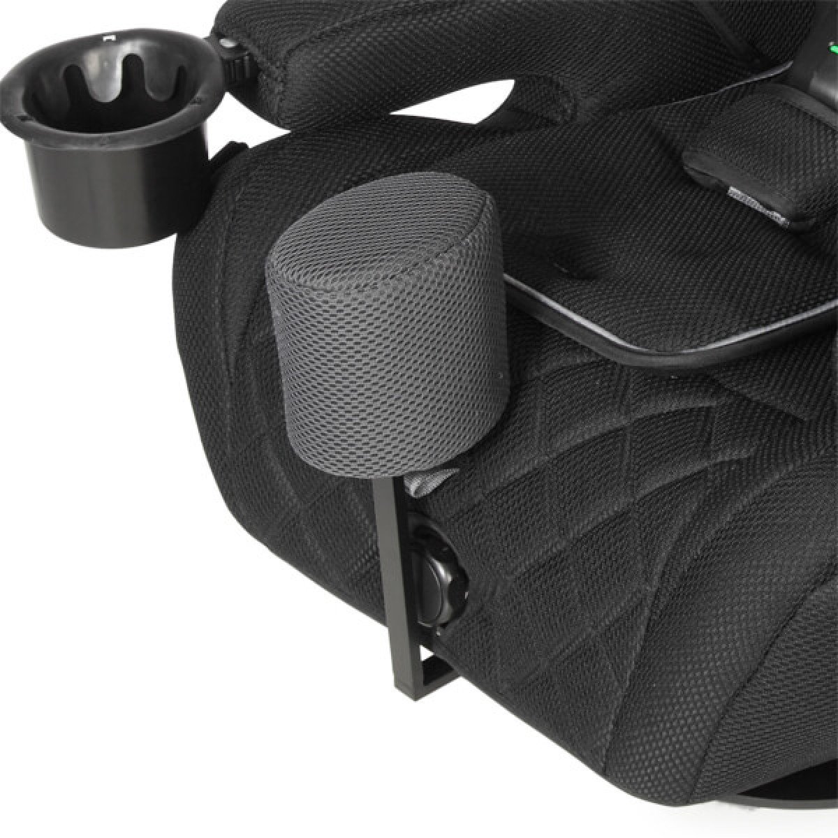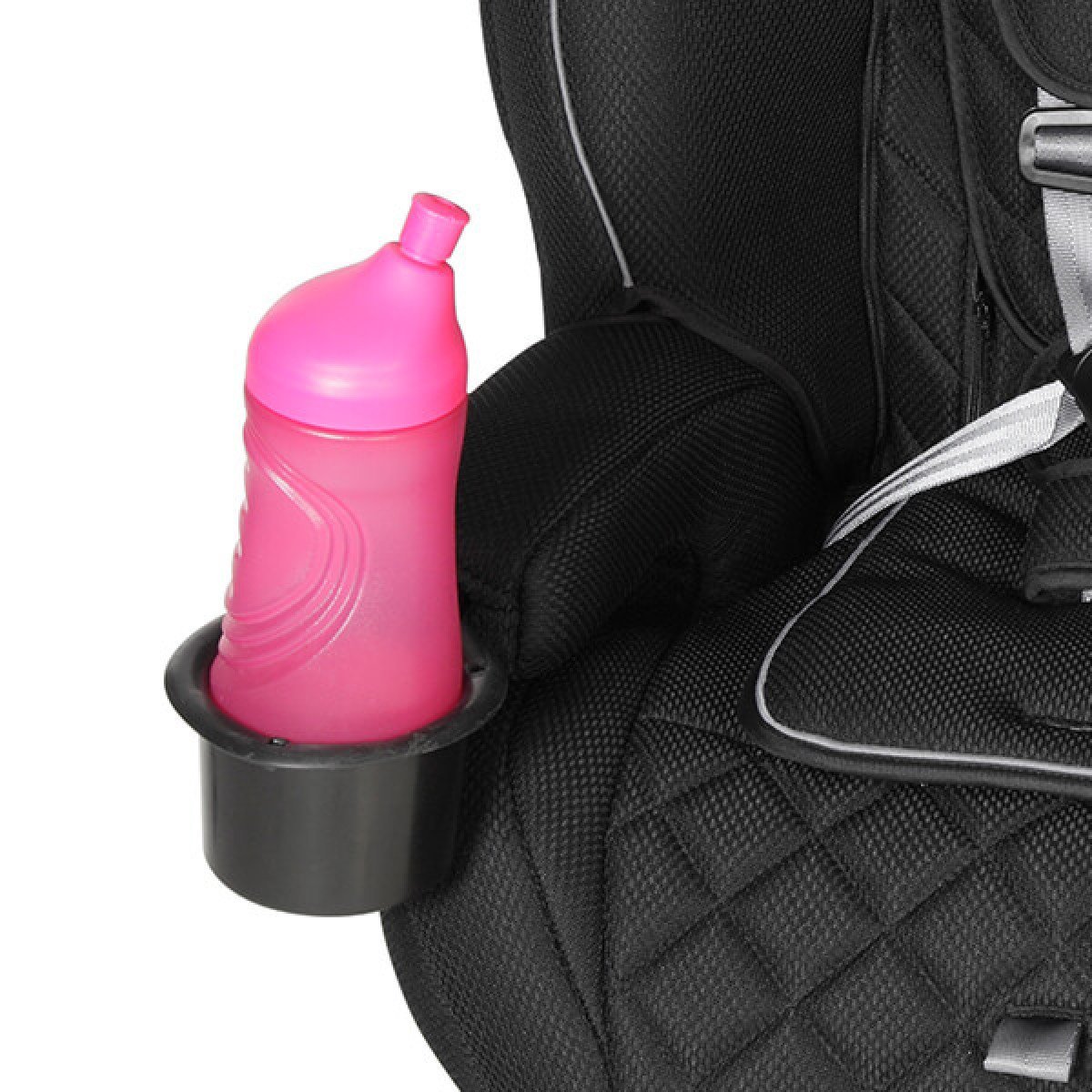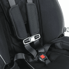 Мягкий подголовник регулируется по высоте с помощью рычага на спинке. Плечевые ремни с мягкой накладкой также возможно отрегулировать по мере роста пользователя. Подстаканник устанавливается как с левой, так и с правой стороны.