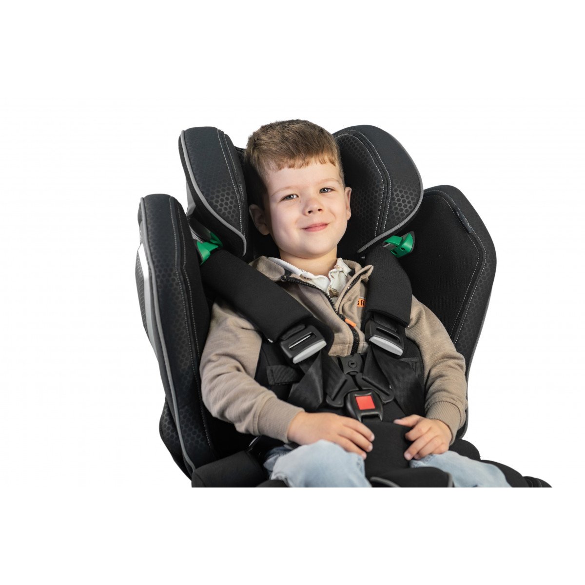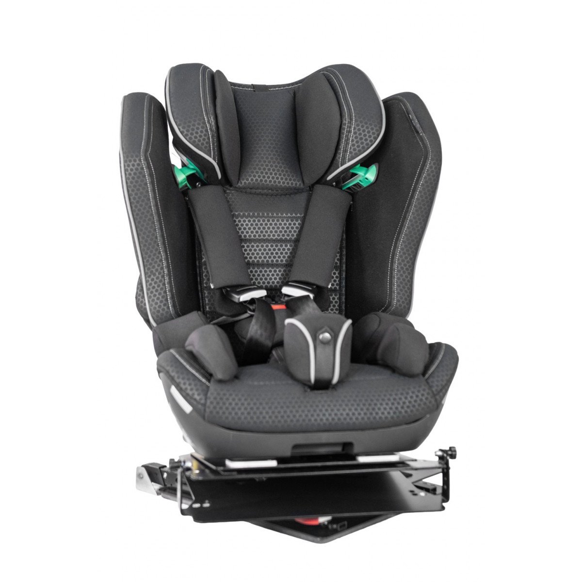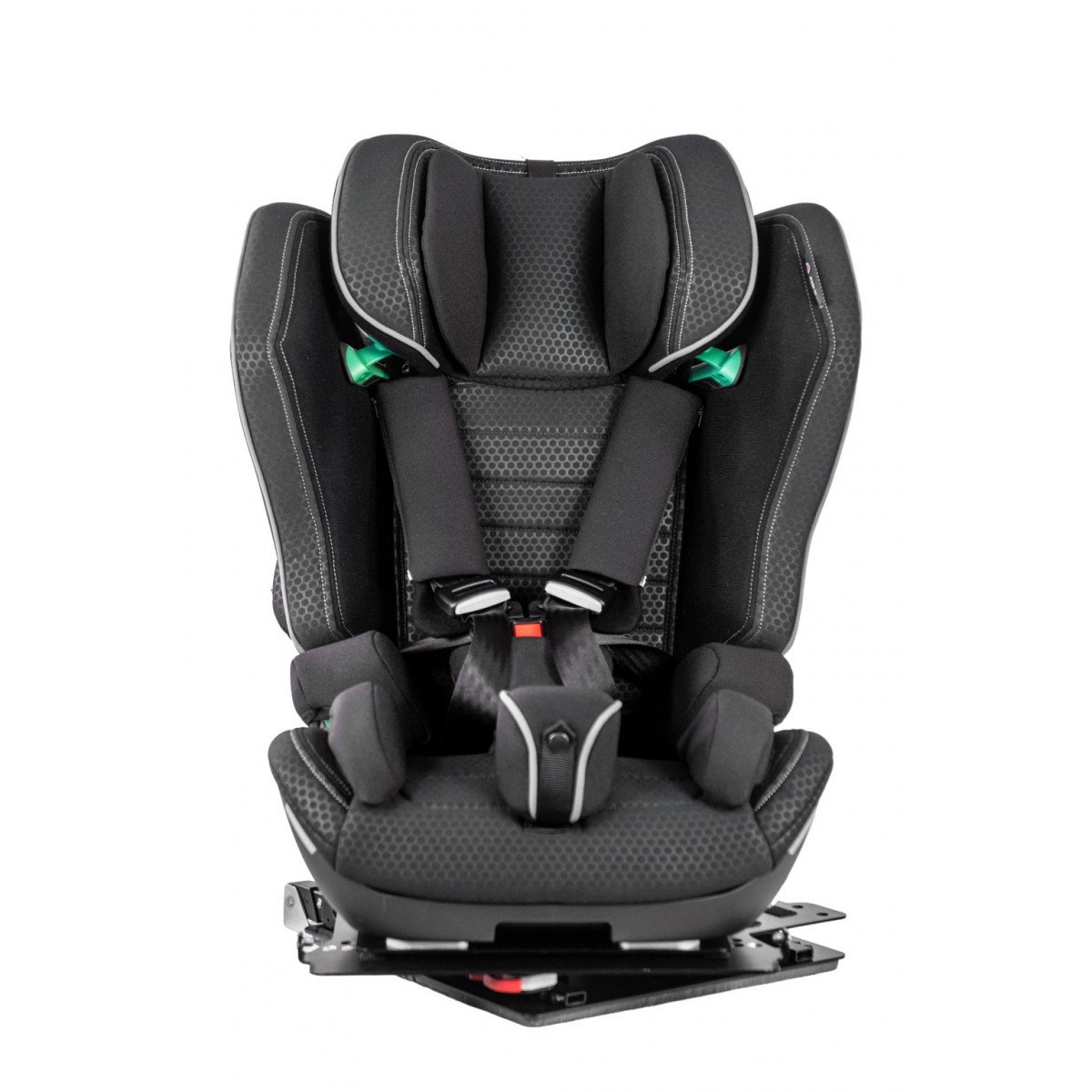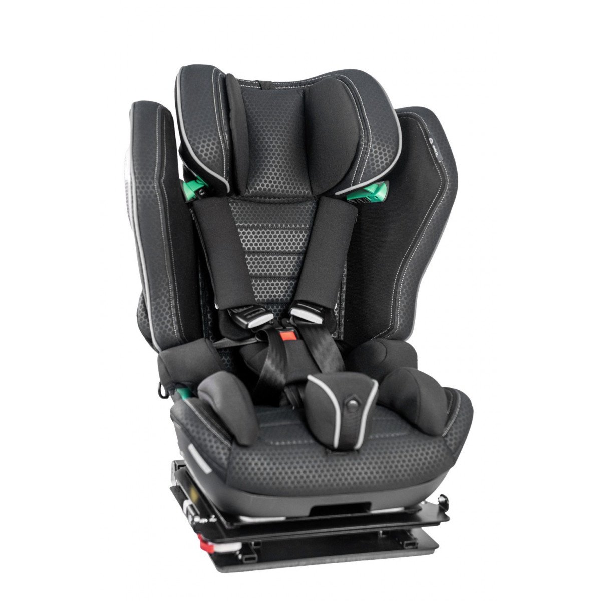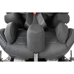 Кресло формирует стабильную посадку и поддерживает физиологически правильное положение тела во время движения. Анатомическая форма сиденья и спинки в сочетании с эргономичным дизайном и усиленной боковой защитой повышает уровень безопасности и снижает утомляемость в дороге. Регулируемый подголовник, боковые опоры и направляющие элементы позволяют точно адаптировать кресло под индивидуальные параметры ребёнка.