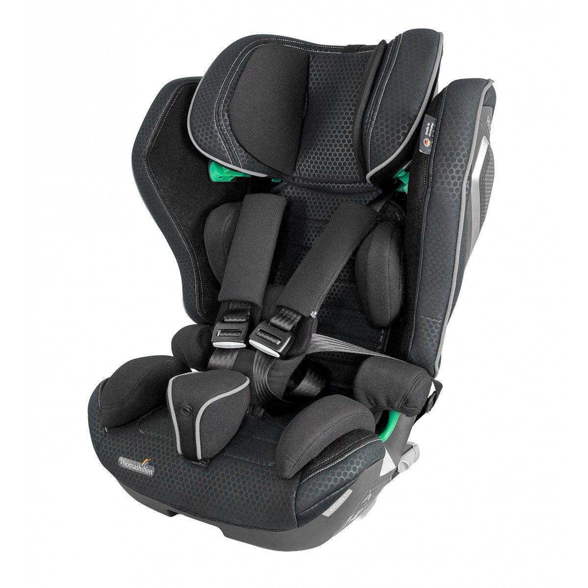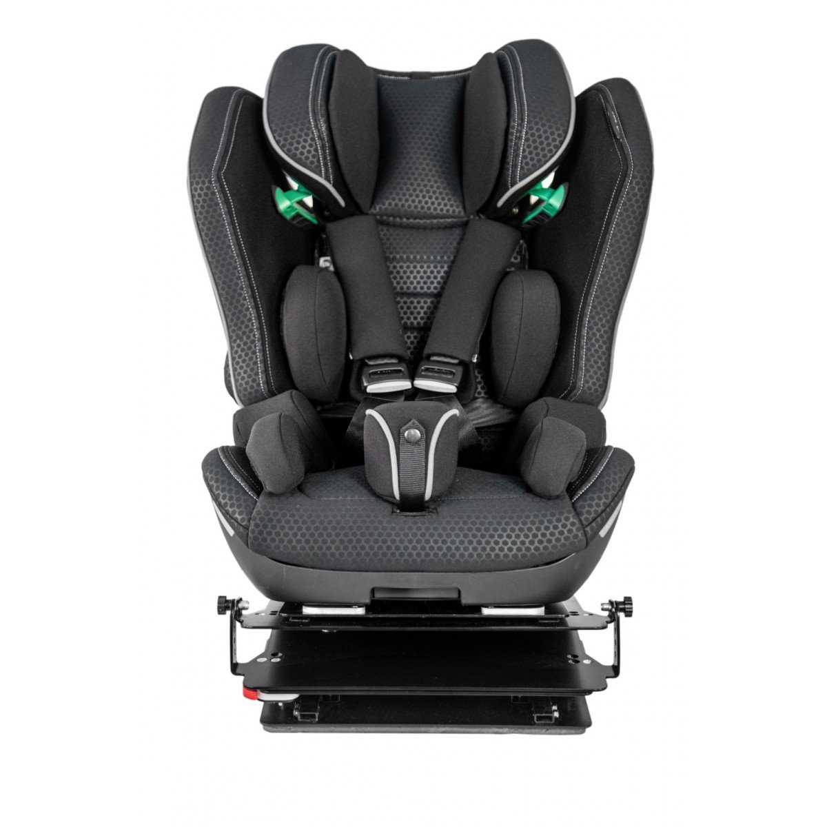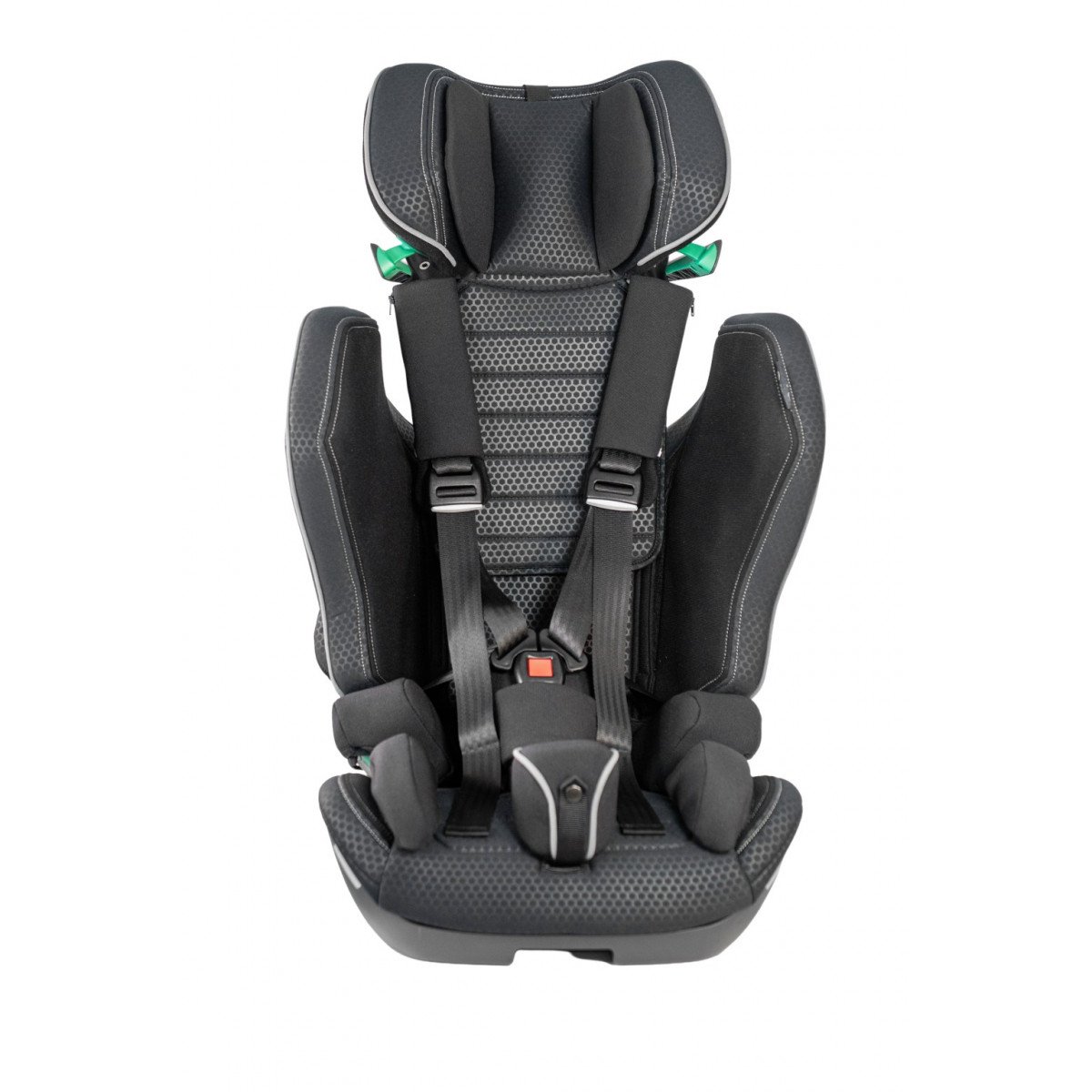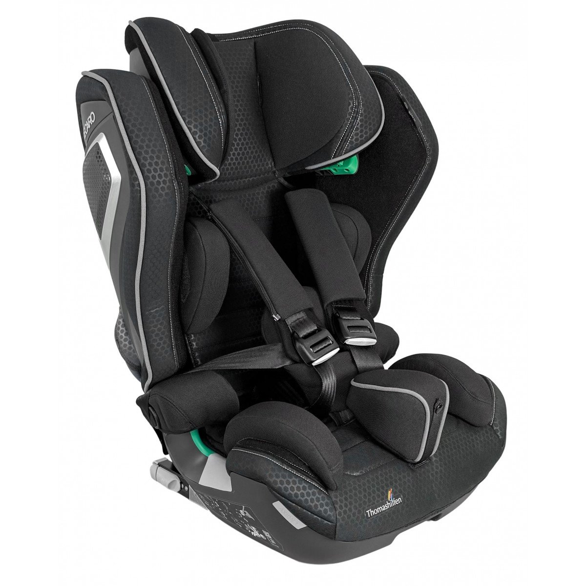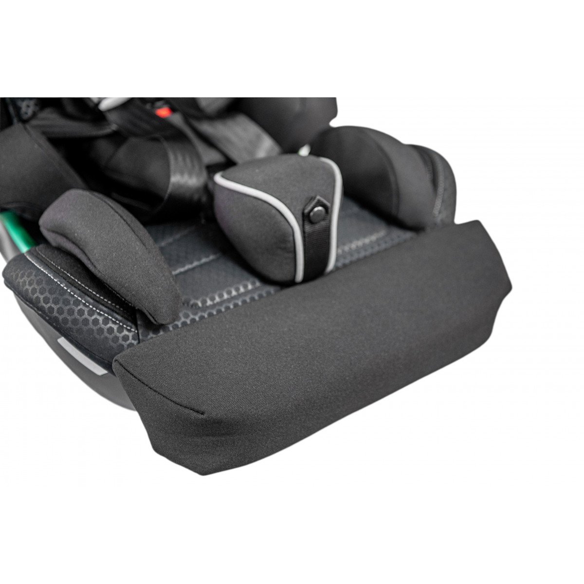 Кресло формирует стабильную посадку и поддерживает физиологически правильное положение тела во время движения. Анатомическая форма сиденья и спинки в сочетании с эргономичным дизайном и усиленной боковой защитой повышает уровень безопасности и снижает утомляемость в дороге. Регулируемый подголовник, боковые опоры и направляющие элементы позволяют точно адаптировать кресло под индивидуальные параметры ребёнка.