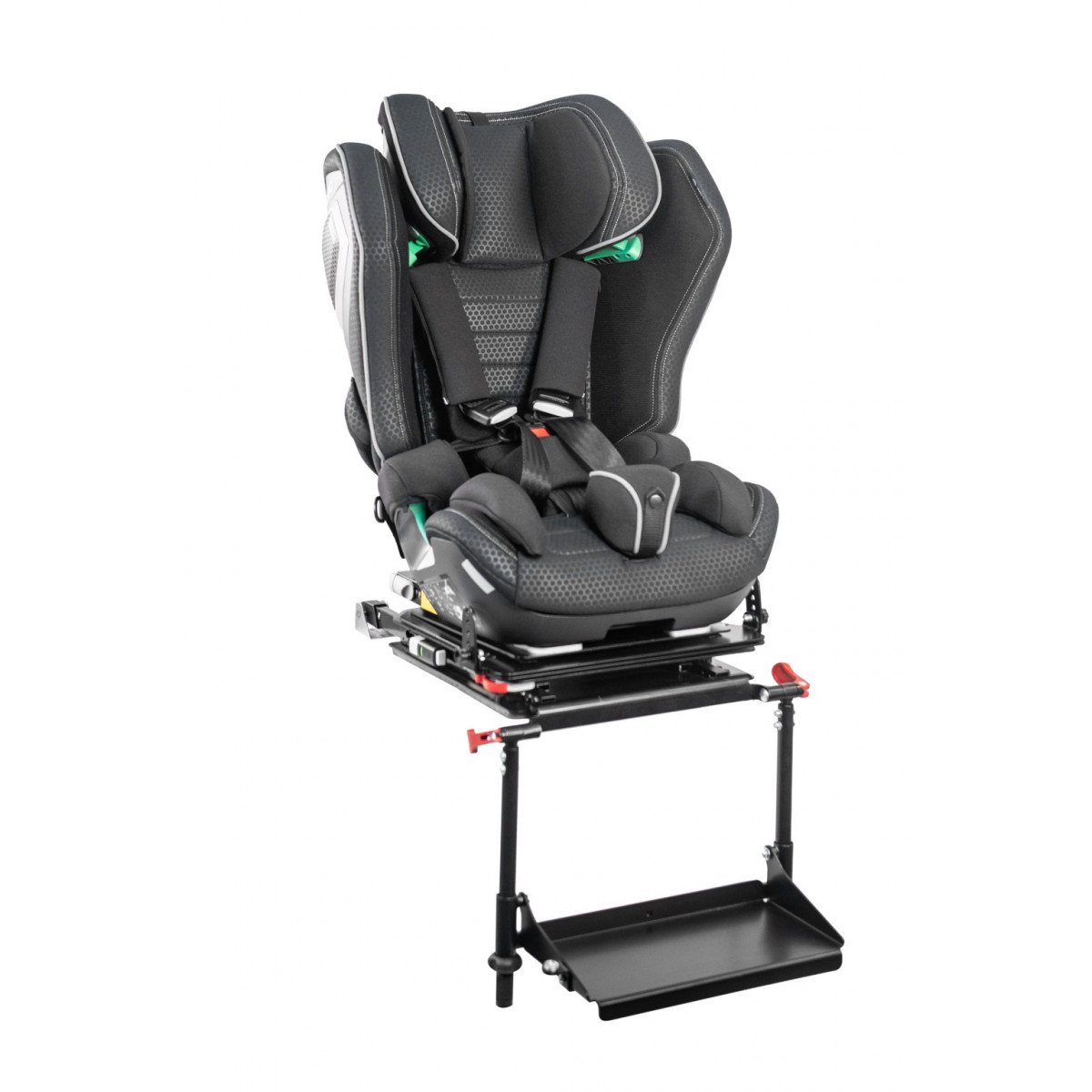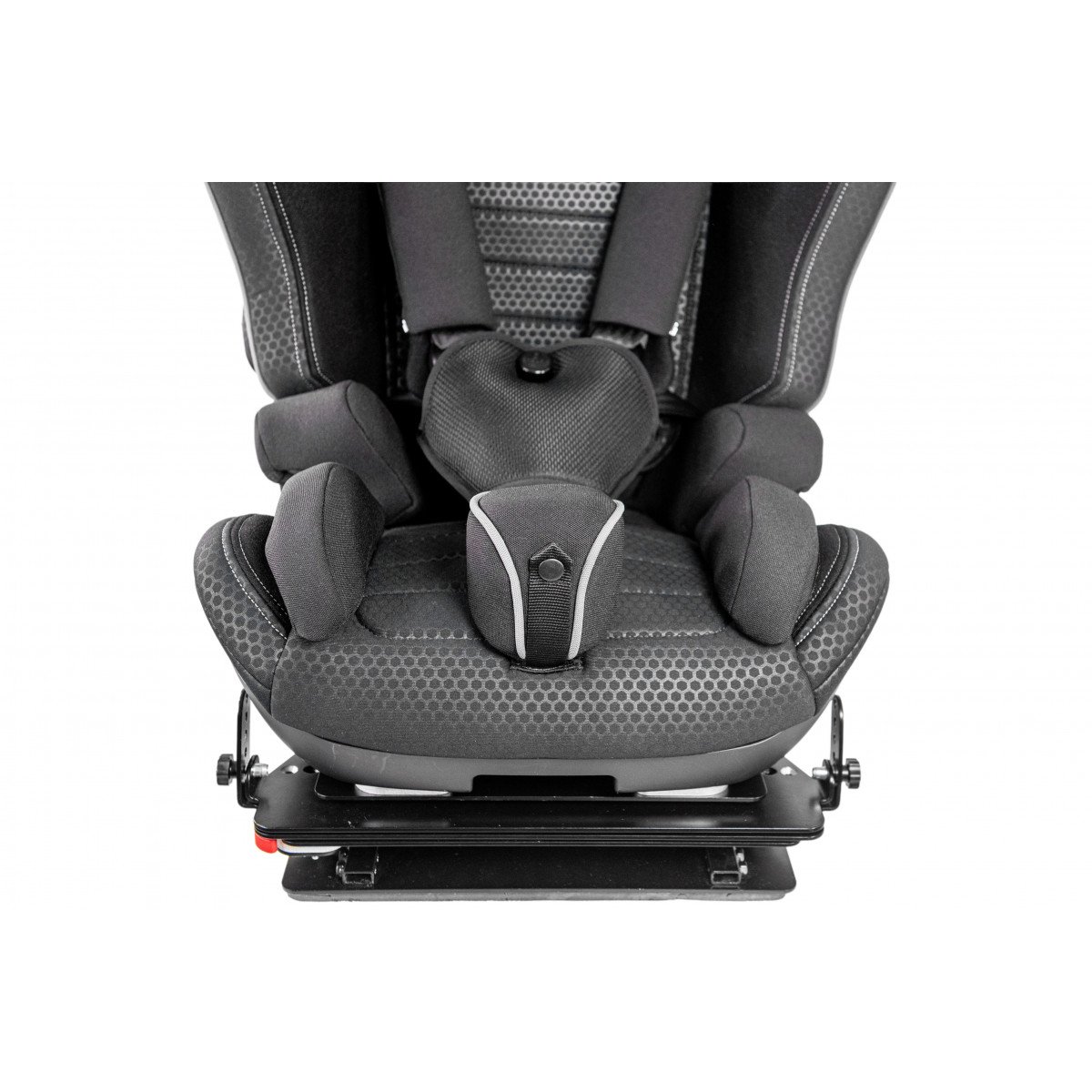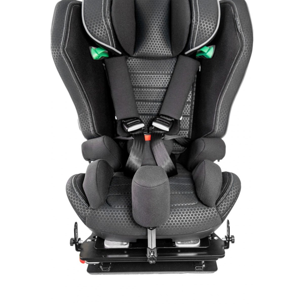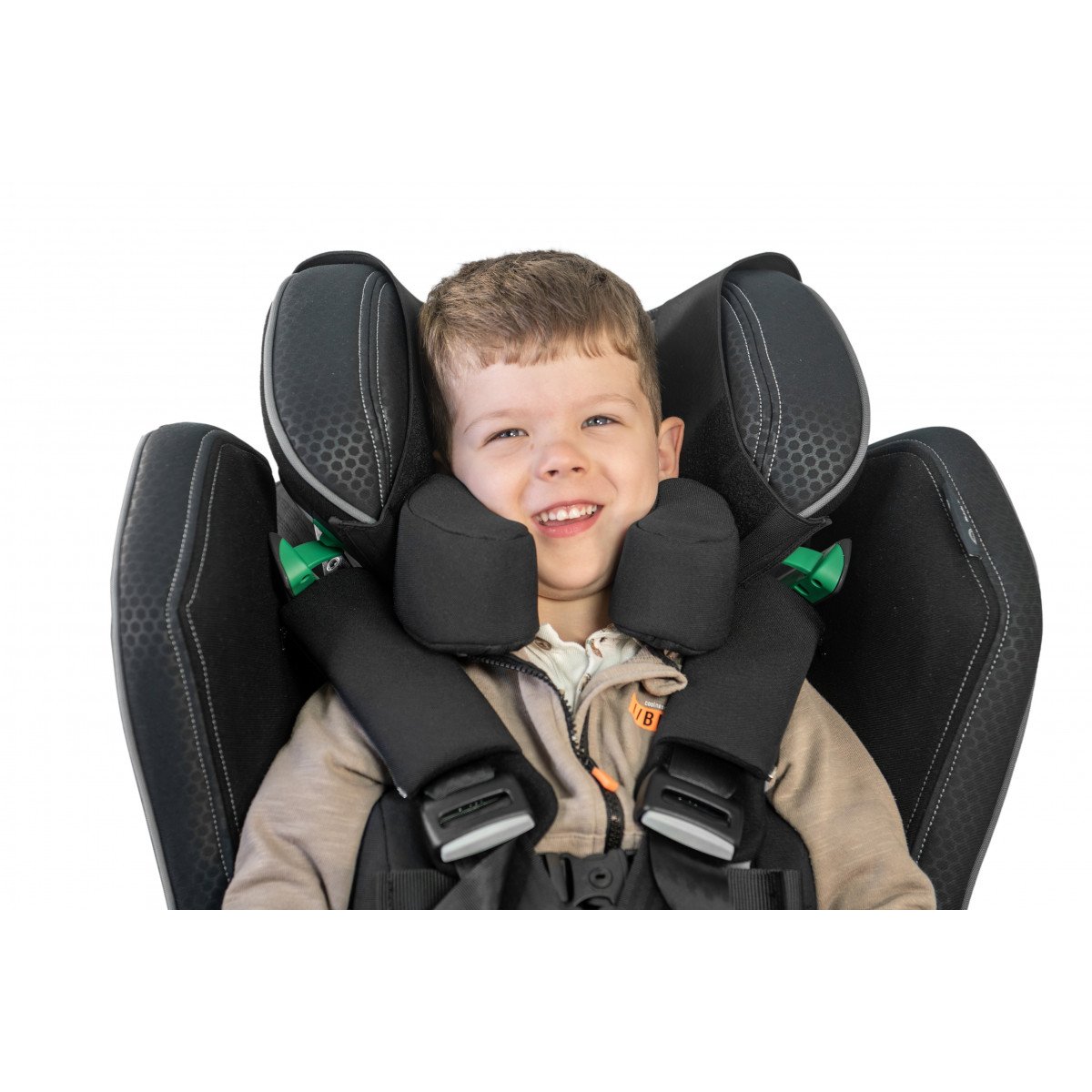 Кресло формирует стабильную посадку и поддерживает физиологически правильное положение тела во время движения. Анатомическая форма сиденья и спинки в сочетании с эргономичным дизайном и усиленной боковой защитой повышает уровень безопасности и снижает утомляемость в дороге. Регулируемый подголовник, боковые опоры и направляющие элементы позволяют точно адаптировать кресло под индивидуальные параметры ребёнка.