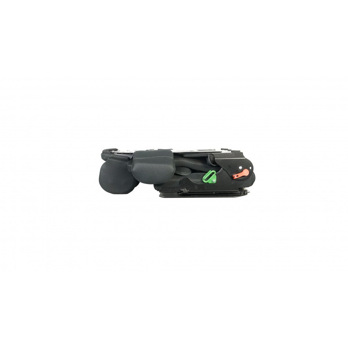Для правильной поддержки предусмотрены плавная регулировка высоты спинки, анатомичный подголовник и опоры для бёдер. Важной особенностью модели являются плечевые поддержки, которые стабилизируют положение ребёнка и предотвращают излишние наклоны во время движения. Дополнительно могут устанавливаться боковые поддержки с откидным механизмом, усиливающие фиксацию туловища.