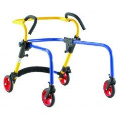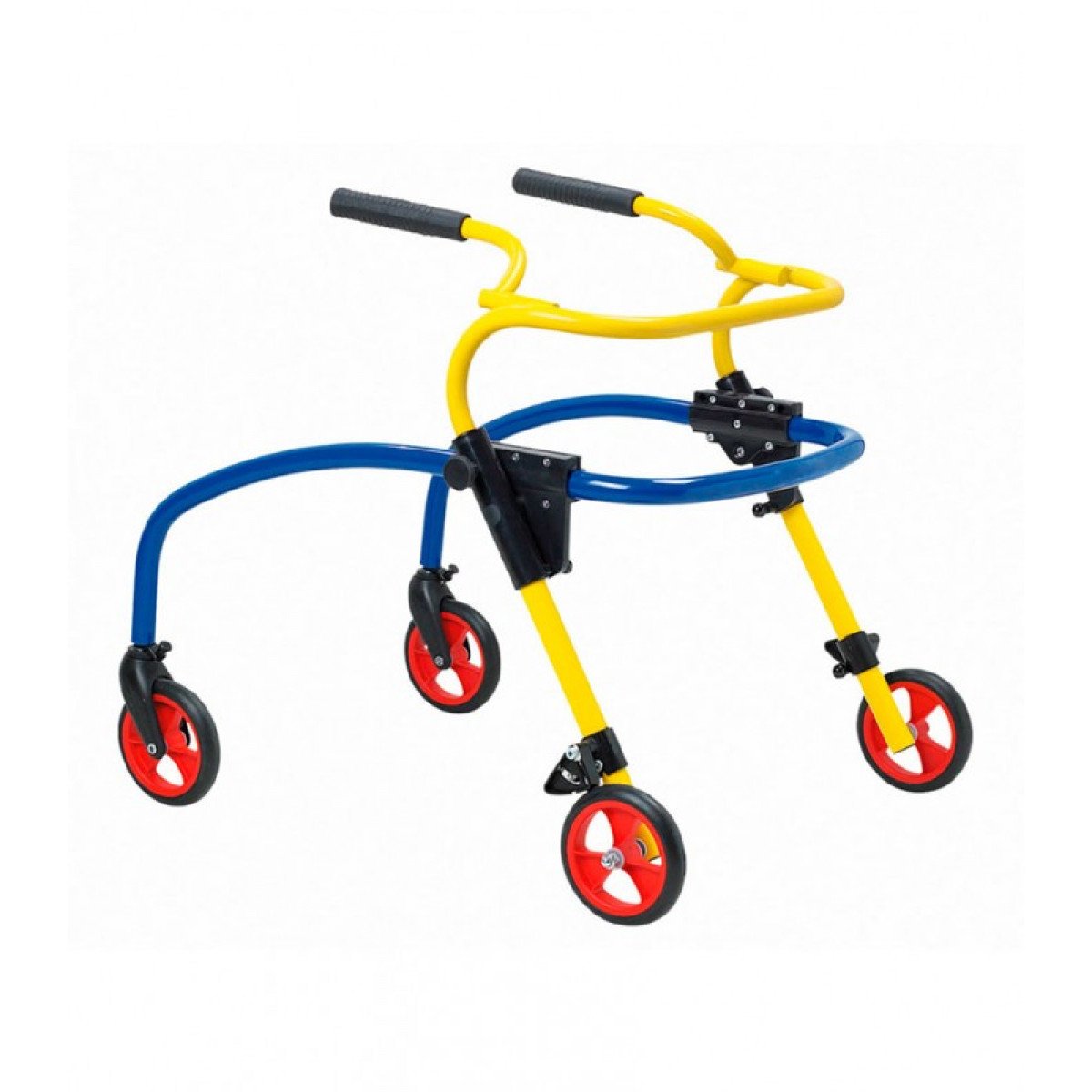 Ходунки имеют возможность регулировки по высоте на пять уровней: минимальная высота составляет 50 см, максимальная — 80 см, а ширина конструкции равна 68 см. Каждая опора оборудована колесом из пенополиуретана, причем два передних колеса являются самоориентирующимися, а два задних оснащены независимым тормозом. Конструкция включает уникальный механизм складывания, который позволяет детям самостоятельно разобраться с процессом раскладывания и складывания ходунков.