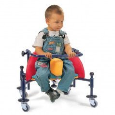 Ormesa Birillo обеспечивает самое удобное и правильное позиционирование с правильным ощущением себя в пространстве. Треугольное сиденье предотвращает переразгибание бёдер и туловища и помогает ребёнку-инвалиду держать туловище и голову ровно. Благодаря этому сохраняется правильная поза и импульс движения. Рекомендуется для детей в возрасте от 1,5 до 8 лет. Абдукционный блок сохраняет положение таза, что в свою очередь стимулирует движение рук и вращение туловища. Birillo играет важную роль в развитии перцептивных, моторных и визуальных функций ребёнка, необходимых для познания и овладения пространством.