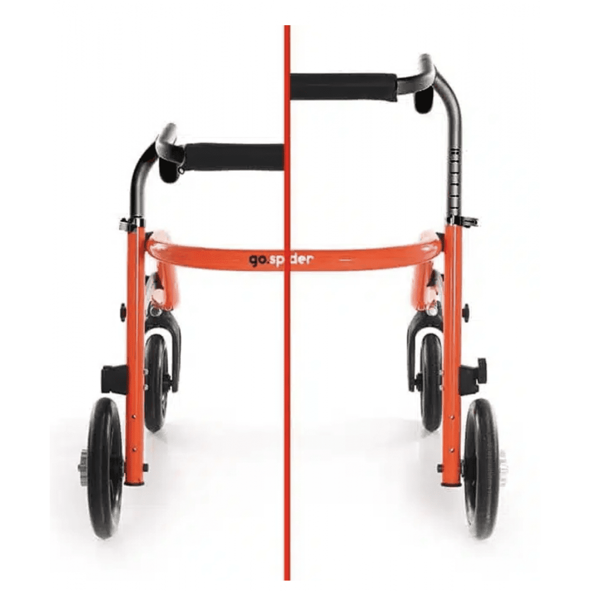 Ортопедические ходунки Go.Spider имеют функциональные передние колёса с возможностью блокировки направления движения, что даёт пользователю больший контроль во время движения. Задние колёса ходунков Go.Spider оснащены регулируемым замедлителем, который снижает скорость движения при затягивании винта. Они также имеет защиту от неконтролируемого движения назад, что оказывает существенное влияние на безопасность при использовании.