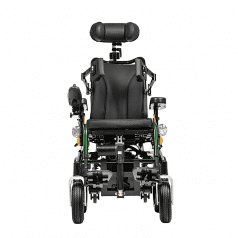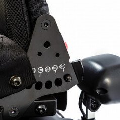 Спинка анатомической формы контролирует осанку и имеет регулировку по углу наклона от 90° до 130°. При необходимости, спинку можно сложить. Спинка коляски адаптивная и никогда не деформируется – в её основе прочные ремни с механизмом самонатяжения. Сиденье регулируется по углу наклона до 30° и имеет 5 положений. Мягкий подголовник регулируется по высоте и положению. Для правильного позиционирования тела предусмотрены мягкие боковые поддержки, которые можно настроить по высоте, ширине и положению. Съёмные подлокотники регулируются по горизонтали и вертикали. Есть возможность установки подлокотника по ширине относительно сиденья. Подножки регулируются по длине, а также их можно отвести в стороны или снять. Опоры для стоп откидные.