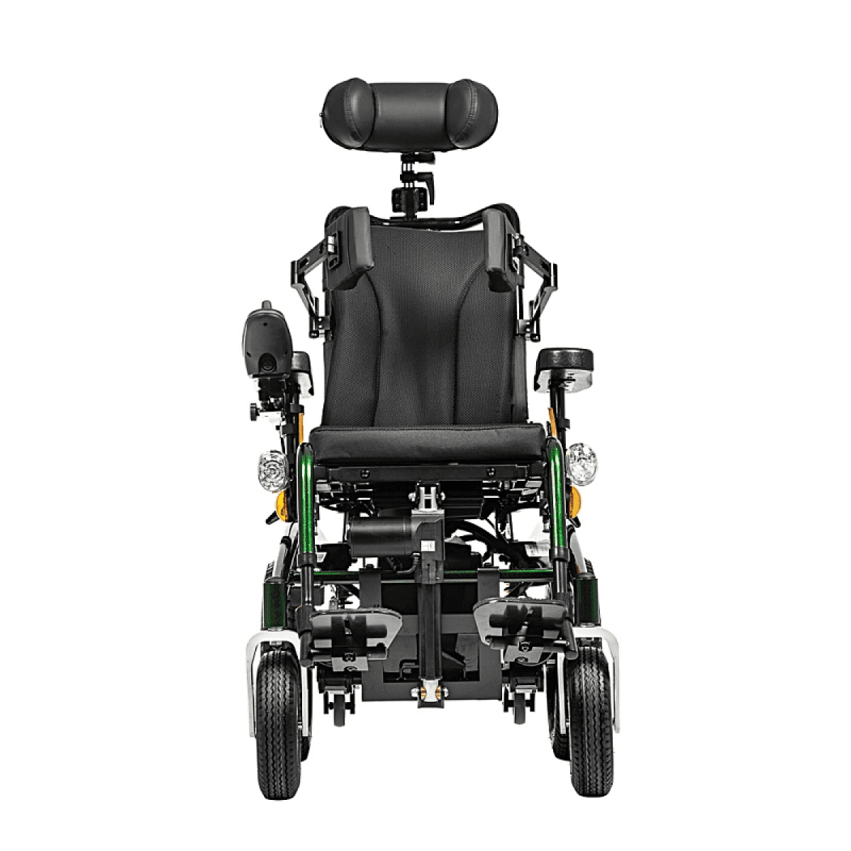 Кресло-коляска приводится в движение как сопровождающим, так и электроприводом. Простой пульт-джойстик может быть установлен и под левую, и под правую руку, регулируется по положению и высоте. Установите пульт в удобном для ребёнка месте, и он сможет передвигаться самостоятельно. Для безопасного передвижения в тёмное время суток кресло-коляска оснащена светодиодным освещением: белые габариты спереди, задние габариты красные, имеются поворотники с мигающим светом.
