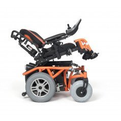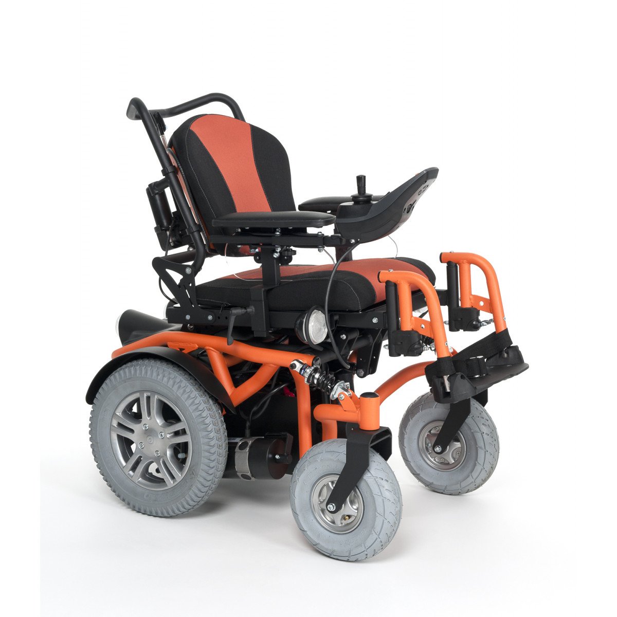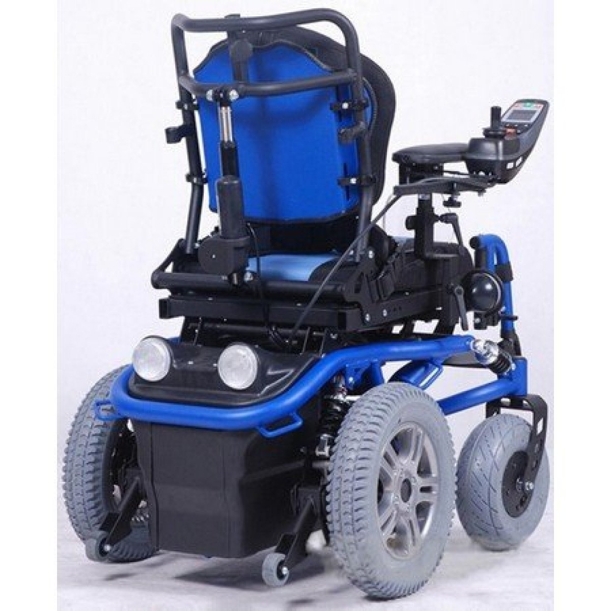 Кресло-коляска приводится в движение как сопровождающим, так и мощным электроприводом. Простой и понятный пульт-джойстик может быть установлен на любую сторону кресла, а также его можно регулировать по положению и высоте. Ресурсов аккумулятора хватит на 30 км движения без подзарядки. Двигатель развивает скорость до 10 км/ч.