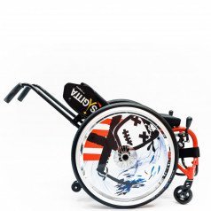 Идеально сбалансированный центр тяжести и максимального упрощённая конструкция делает коляску очень маневренной и мобильной. Уникальная конструкции рамы делает коляску безопасной и долговечной, а высокопрочный алюминиевый сплав обеспечивает изделию минимальный вес 9 кг. По заказу клиента задние колёса могут устанавливаться на коляску со смещённым центром тяжести и различным углом развала в 4°, 6°, 8°, 10°.