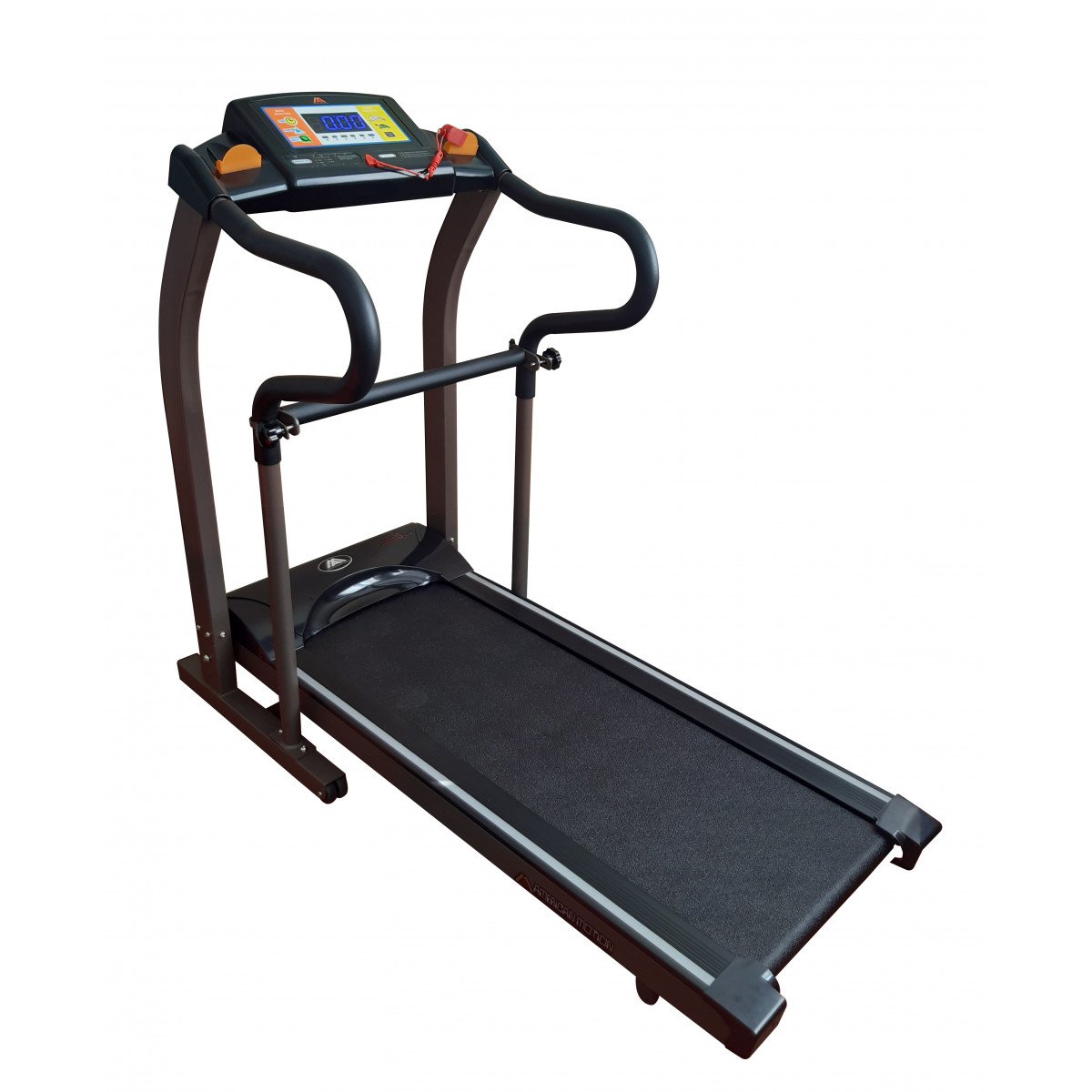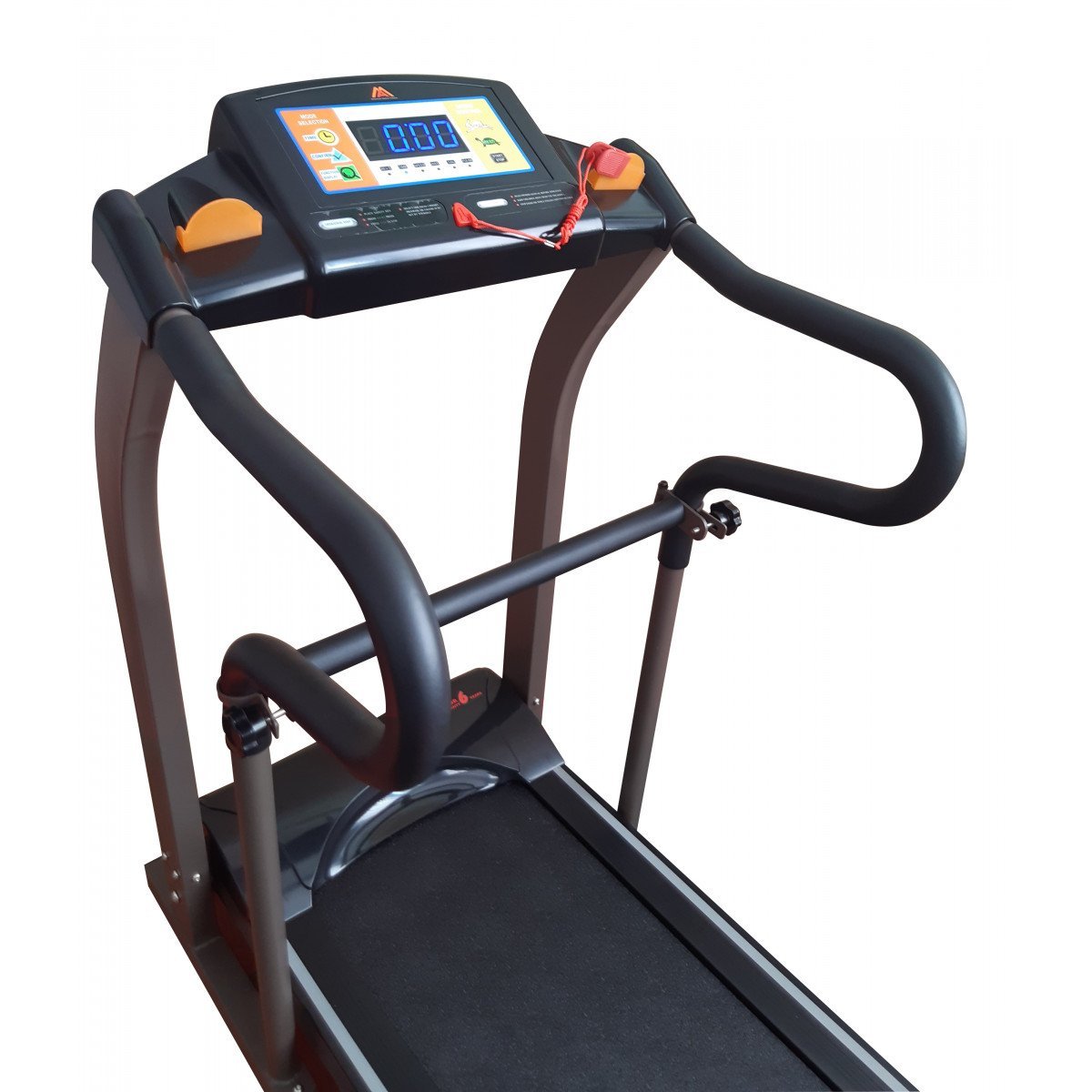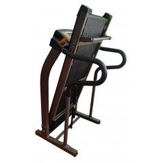Детьми ДЦП в большей части диагнозов для правильного формирования стопы необходимы тренировки «ходьбы в гору». Для этого в данной модели есть возможность ручного (механического) изменения угла наклона полотна. Поднимите беговое полотно и снизу вы увидите регулируемые опоры в крайней части бегового полотна. Установите один из 3 уровней. Опустите беговое полотно, оно плавно без удара опустится на пол. Продолжайте тренировку в режиме «подъём в гору».