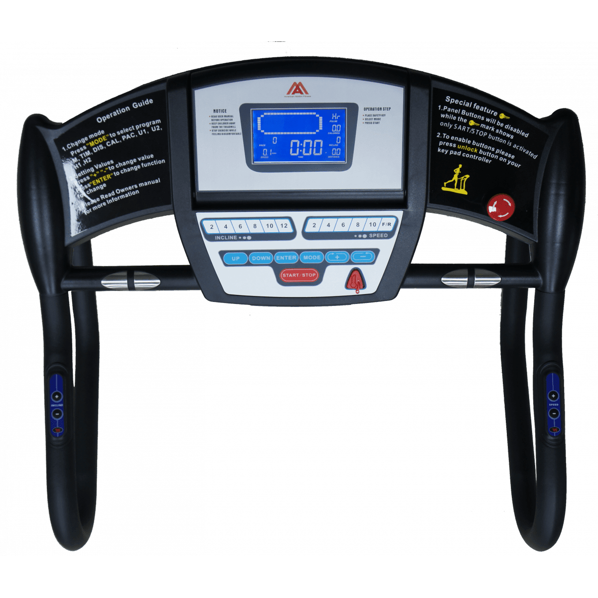 Реабилитационная беговая дорожка Amf 8643 имеет 8 программ: ручная, 3 встроенные, 1 пользовательская, кардиопрограмма и пульсозависимая программа. Размер бегового полотна составляет 154 см в длину и 50 см в ширину. Эти параметры обеспечивают достаточное пространство для комфортной тренировки, позволяя пользователю не чувствовать ограничения в пространстве. Данное покрытие также обеспечивает надёжное сцепление и предотвращает возможность скольжения. А на поручнях беговой дорожки расположены элементы управления, которые позволяют пользователю легко и быстро изменять угол наклона и скорость движения.