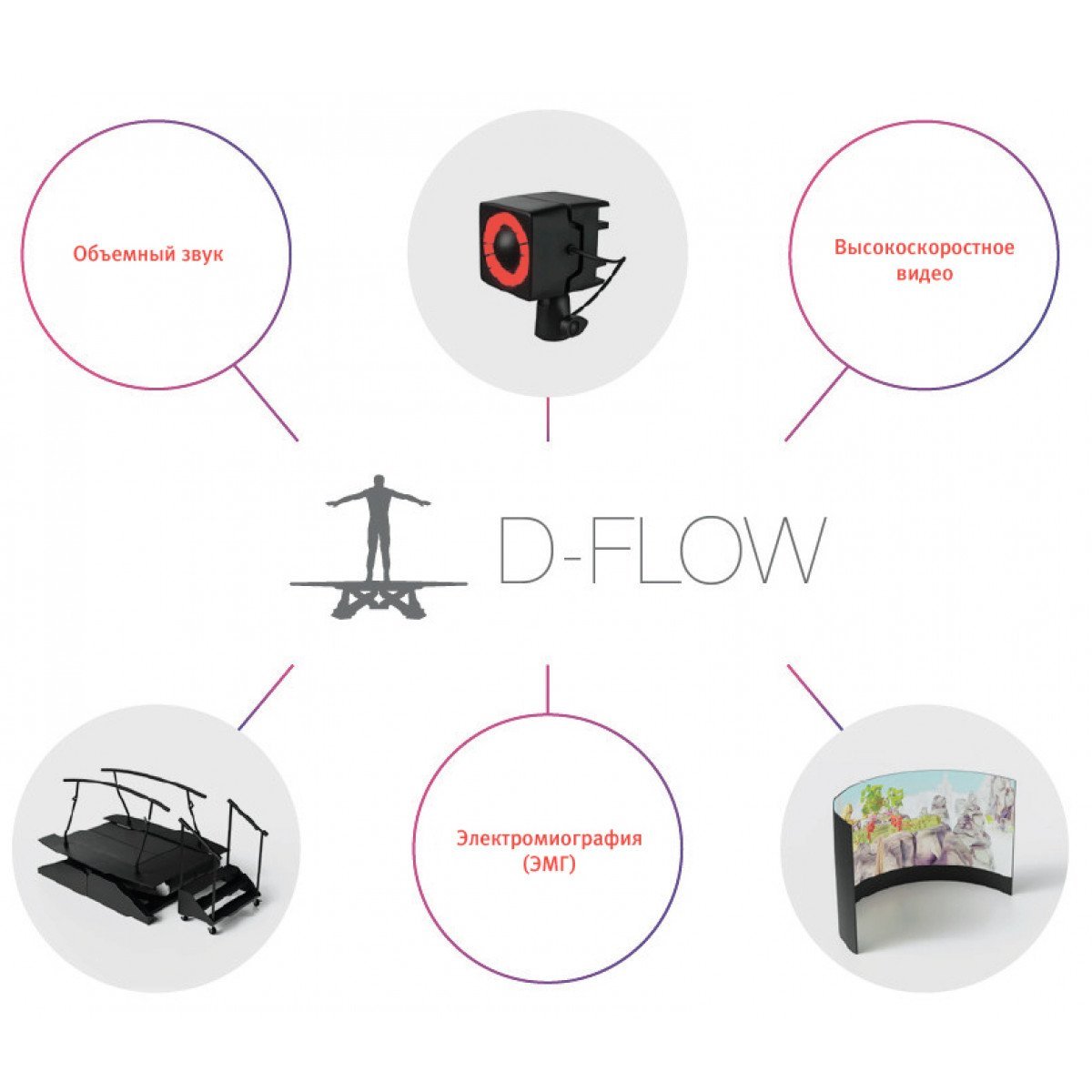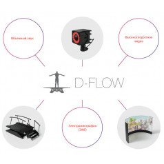 Программное обеспечение D-Flow является инструментом для создания интерактивных приложений в виртуальной реальности. Оно позволяет комбинировать различные модули, чтобы разрабатывать сложные и увлекательные приложения. Система поддерживает множество оборудования, включая инфракрасные камеры для захвата движений, платформы, которые могут двигаться в разных направлениях, беговые дорожки и различные сенсоры.