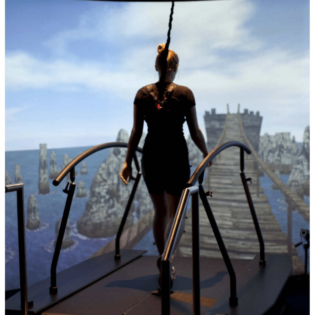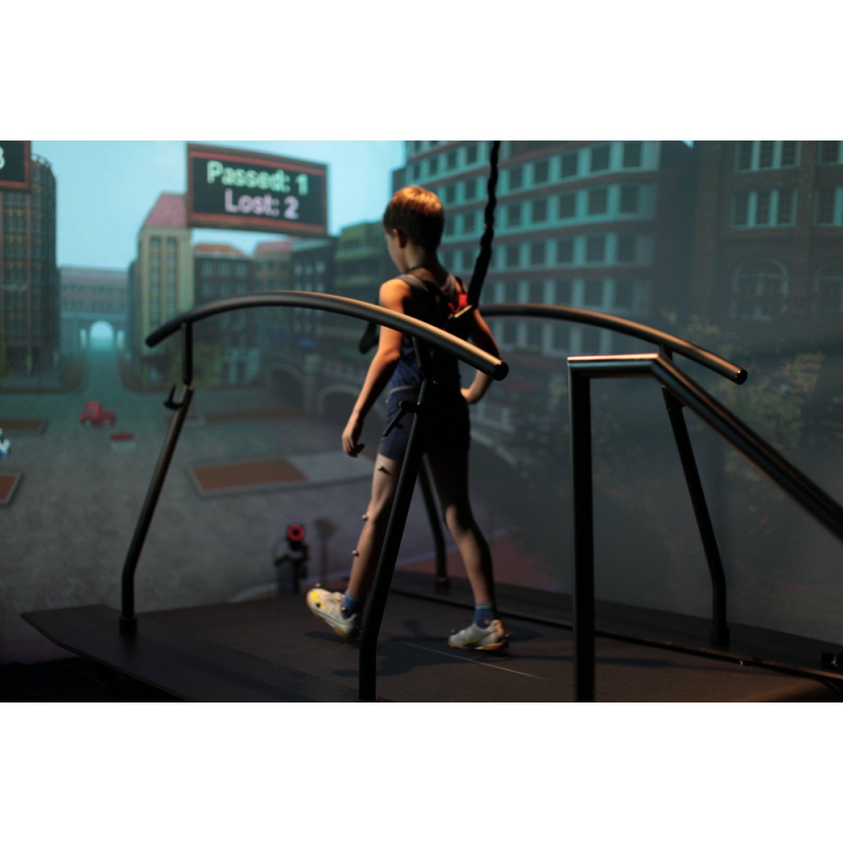 - Симуляция ходьбы в гору/ с горы в комбинации с пертурбациями и визуальными раздражителями усложняет задачу пациентам и позволяет измерить поведение походки