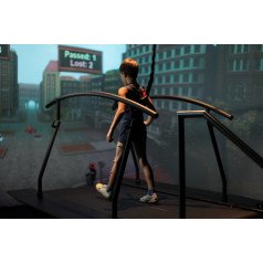 - Режим адаптивного темпа беговой дорожки позволяет пациенту самостоятельно начинать ходьбу и идти с собственной скоростью, в то время как виртуальная реальность и беговая дорожка подстраиваются под ритм его движения
