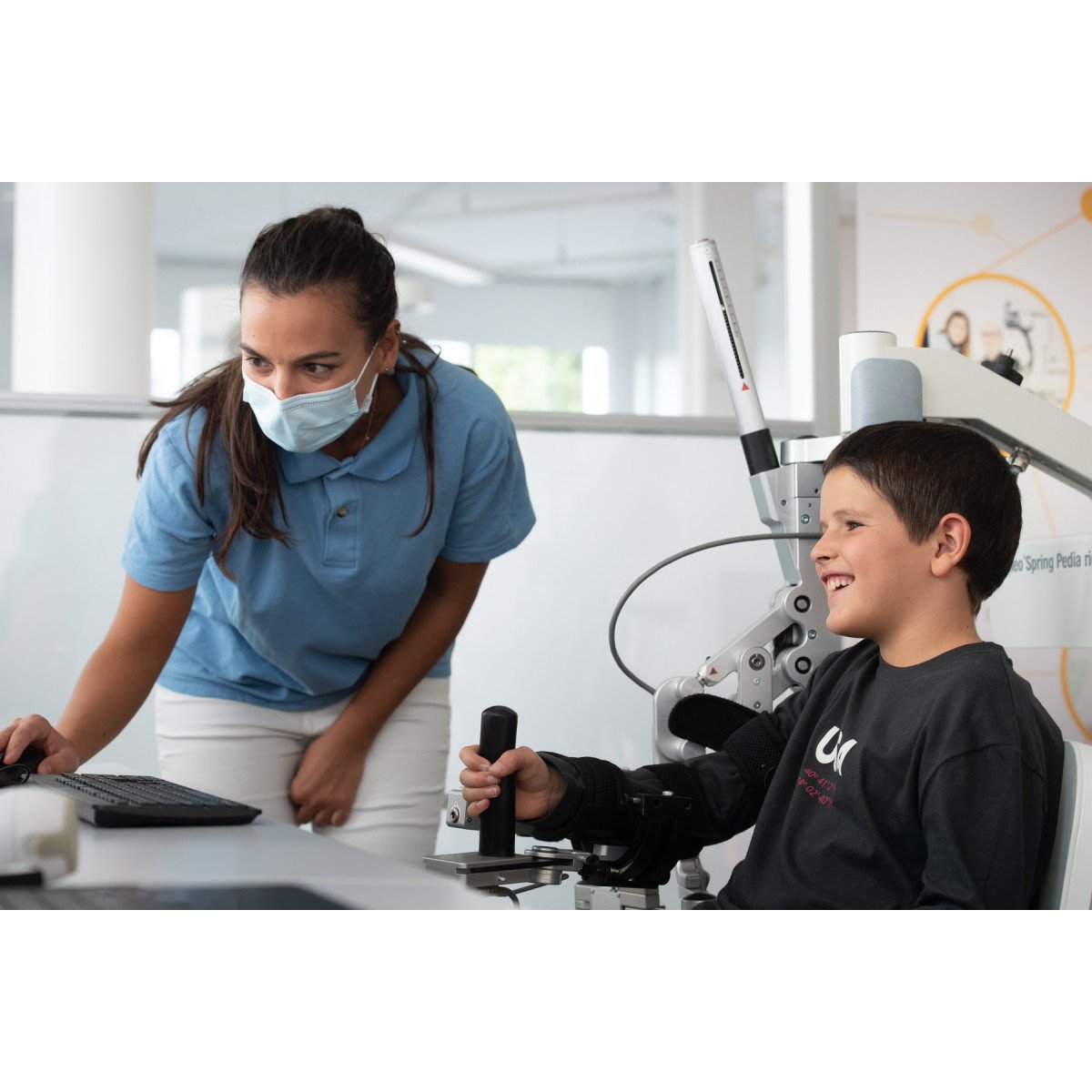 Программное обеспечение ArmeoSpring точно фиксирует движения руки, помогает оценивать прогресс и выявлять остаточные функции. Доступно более 25 упражнений с настраиваемым уровнем сложности, индивидуальный диапазон движений и персональный план терапии. Комплекс подходит для занятий прямо в инвалидной коляске, рабочее пространство регулируется под правую и левую руку, обеспечивая безопасность и комфорт во время тренировок.