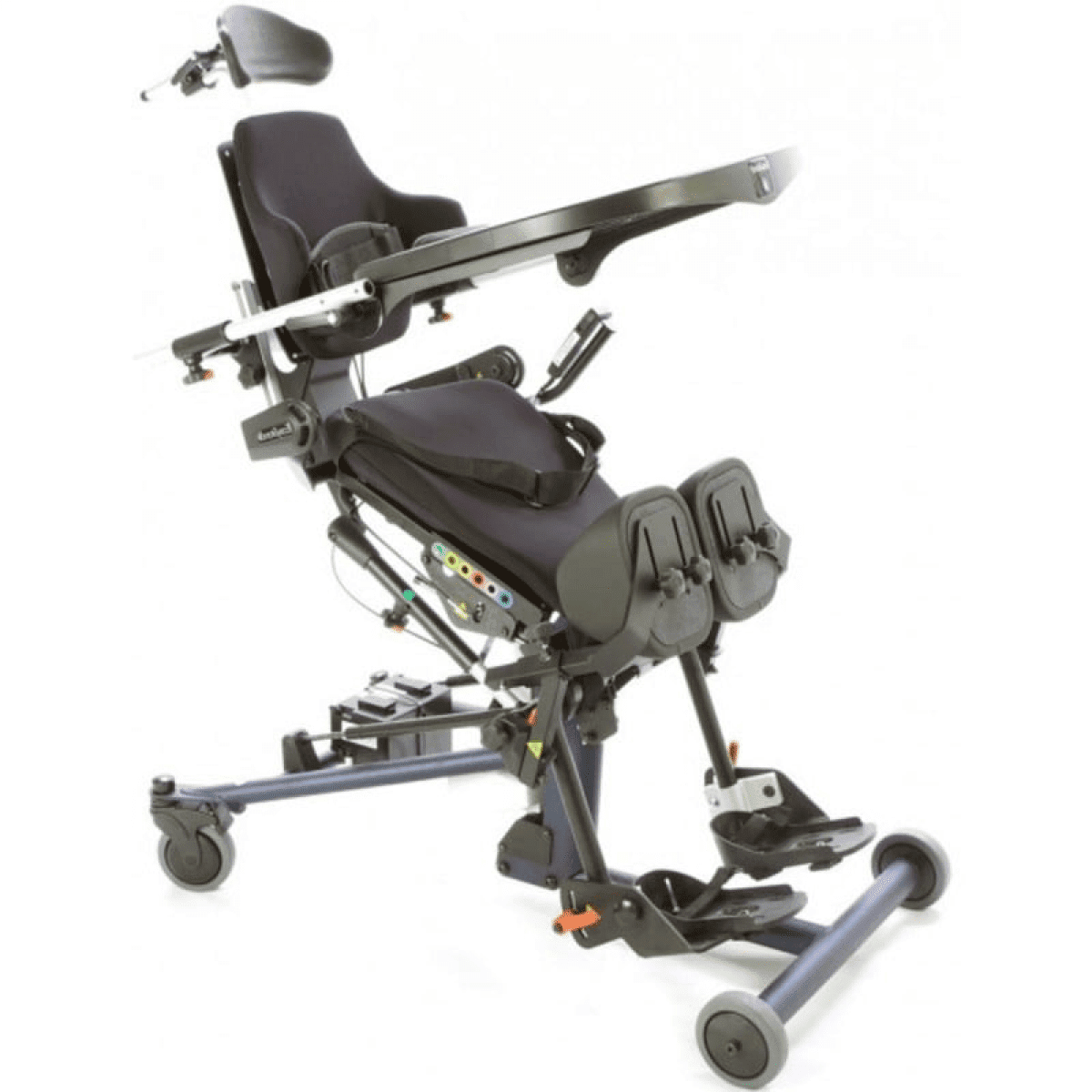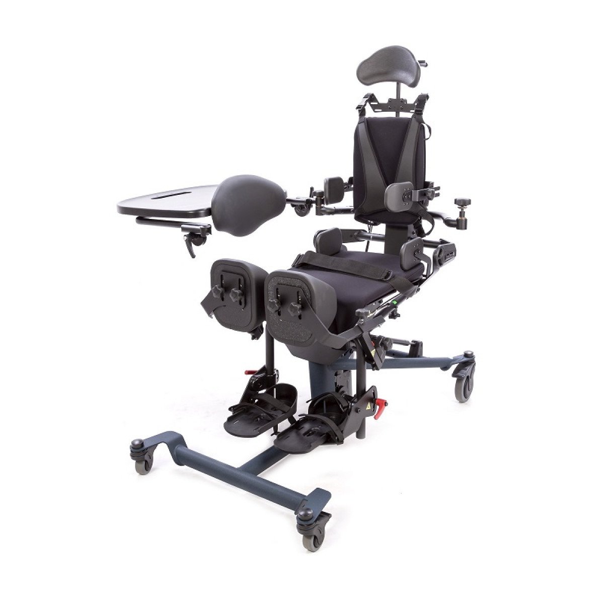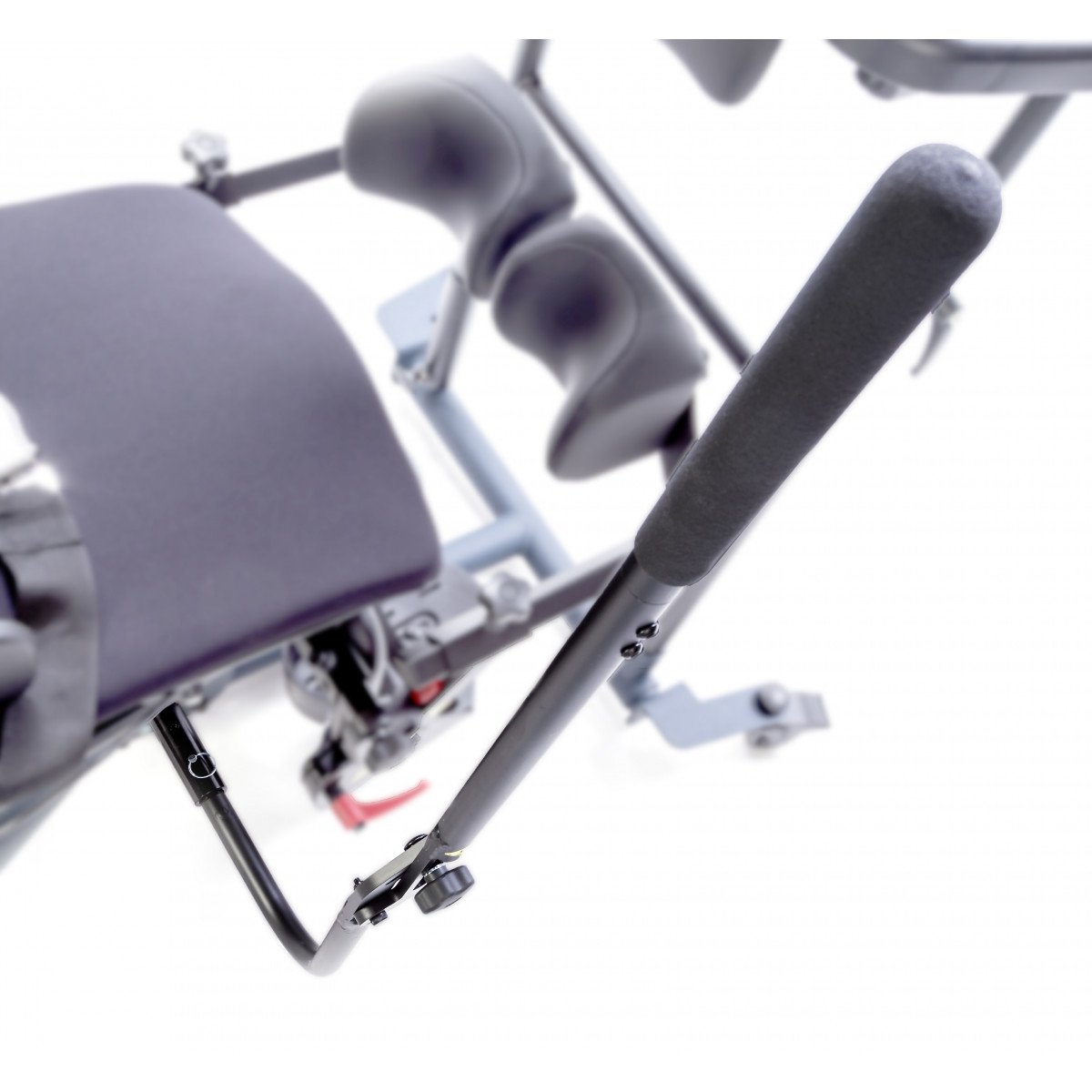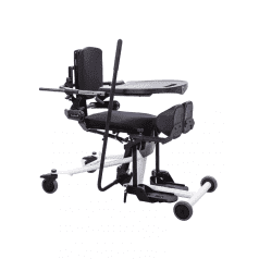 Bantam Medium позволяет ребёнку плавно переходить из сидячего положения в вертикальное или наклонное, в том числе лёжа — это удобно для детей, которым трудно пересаживаться. Подходит для повседневного использования, например, как партa в школе. Конструкция легко настраивается под степень поддержки: можно добавить наколенники, боковые опоры и ремни, чтобы зафиксировать таз и тело. Это снижает нагрузку при смене позиций и делает тренировки безопасными даже при сложных диагнозах.