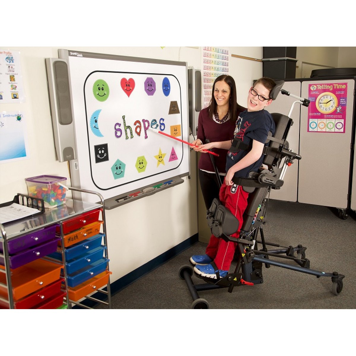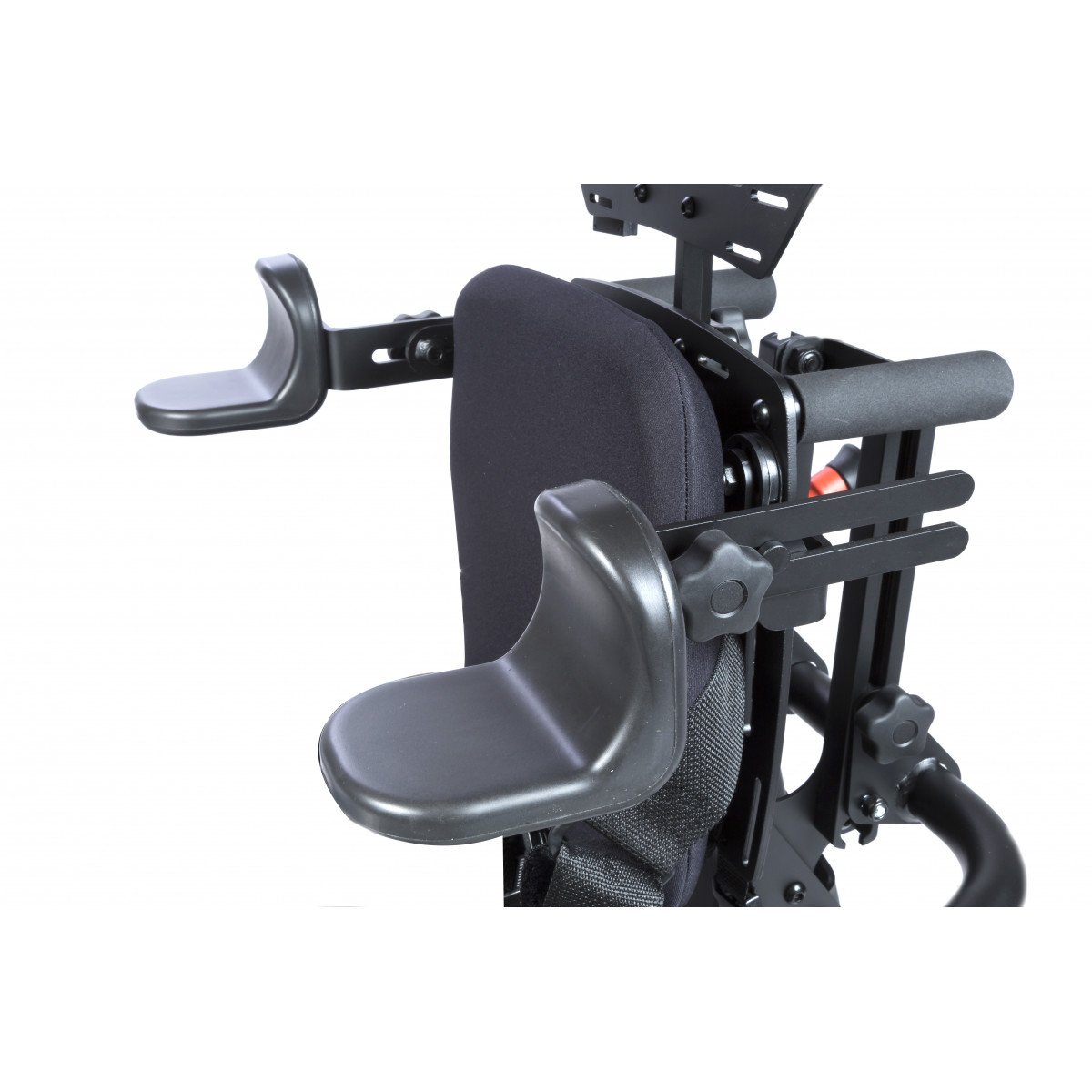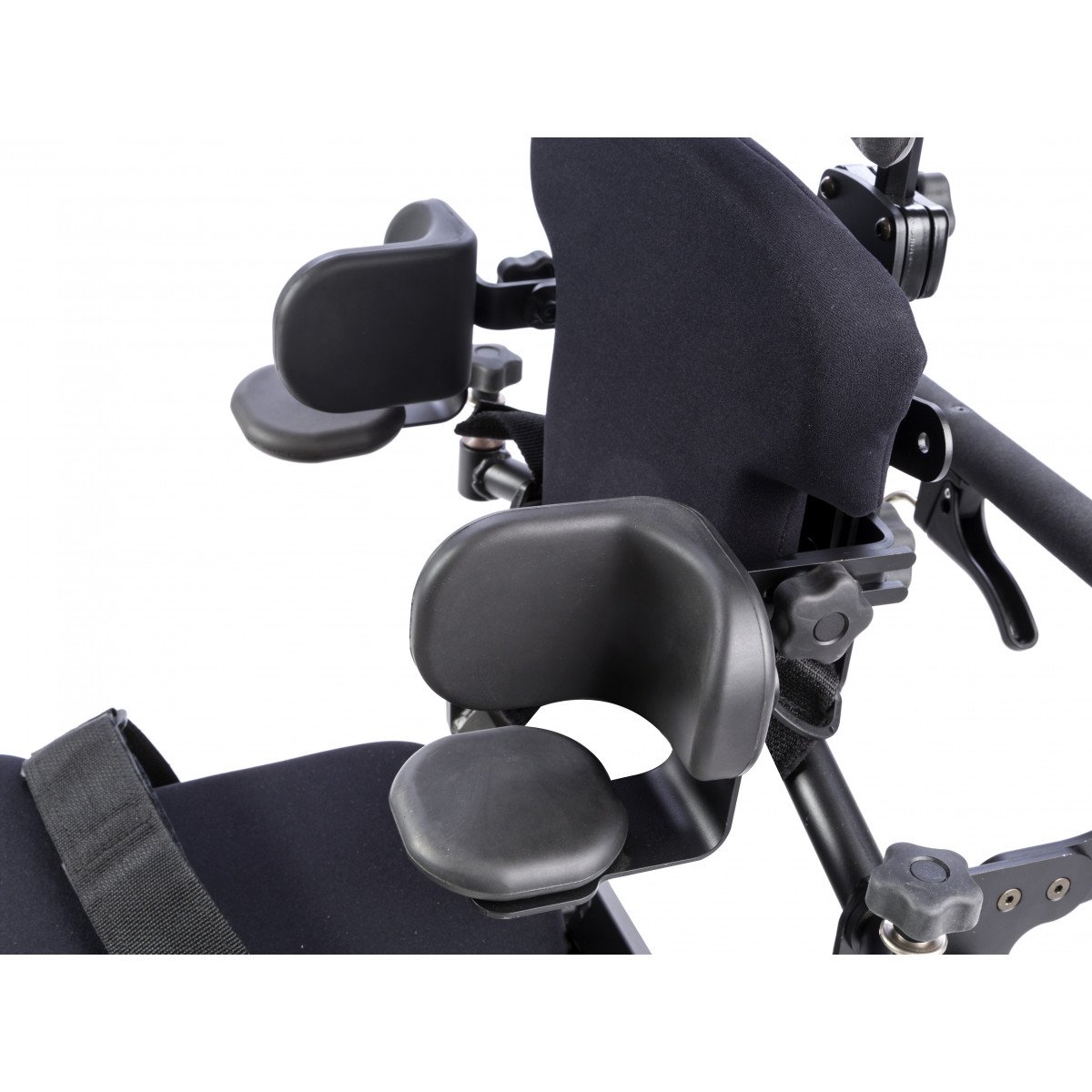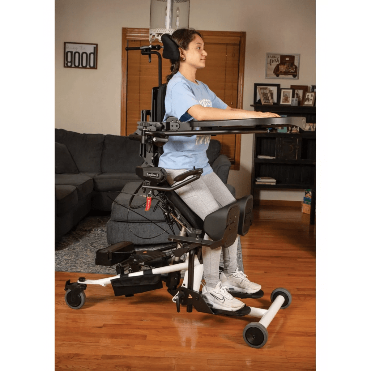 Bantam Medium позволяет ребёнку плавно переходить из сидячего положения в вертикальное или наклонное, в том числе лёжа — это удобно для детей, которым трудно пересаживаться. Подходит для повседневного использования, например, как партa в школе. Конструкция легко настраивается под степень поддержки: можно добавить наколенники, боковые опоры и ремни, чтобы зафиксировать таз и тело. Это снижает нагрузку при смене позиций и делает тренировки безопасными даже при сложных диагнозах.