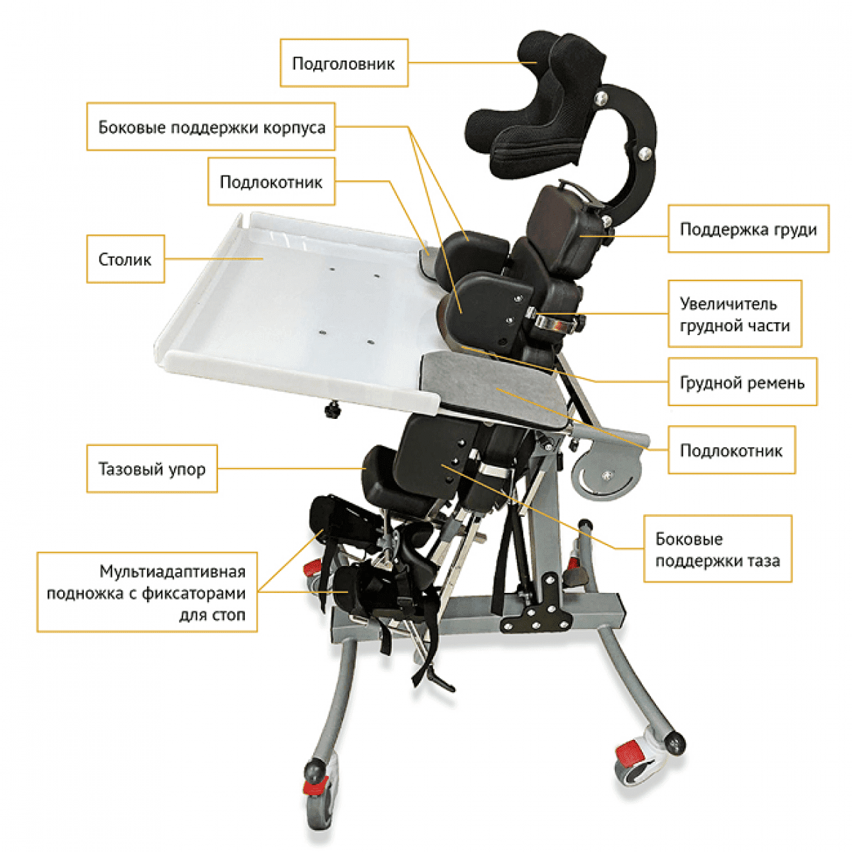 Вертикализатор Экзо-технологии Экзостенд представляет собой инновационное устройство, предназначенное для поддержки вертикального положения детей с различными нарушениями двигательной функции. Одной из ключевых особенностей данного вертикализатора является его передне-заднеопорная комплектация