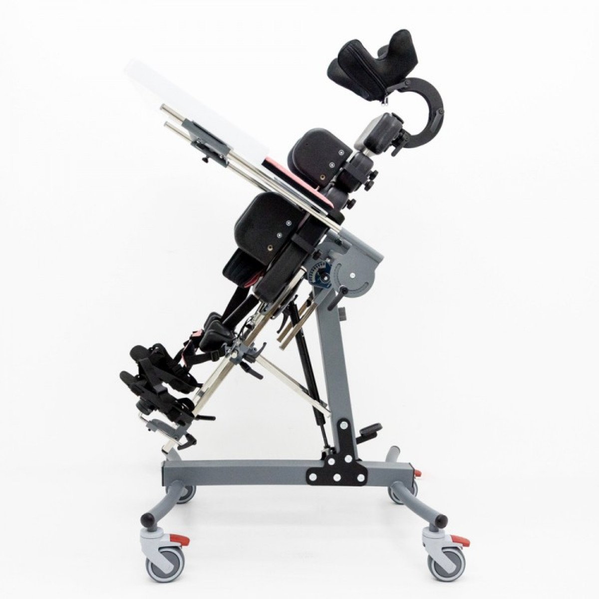 Дополнительно опора оборудована механизмом изменения угла в коленном суставе, который позволяет разместить ребенка даже при наличии контрактур в колене. Платформа для стоп крепится на специальной шарообразной основе, что предоставляет возможность настроить её в соответствии с особенностями сгибания и разгибания, а также пронации и супинации стопы.