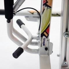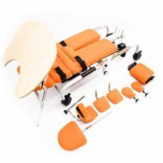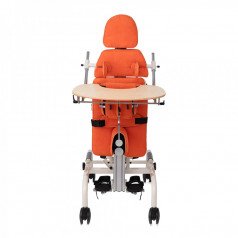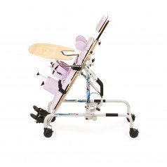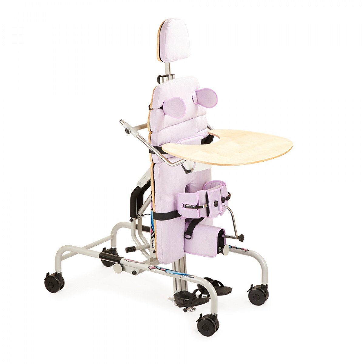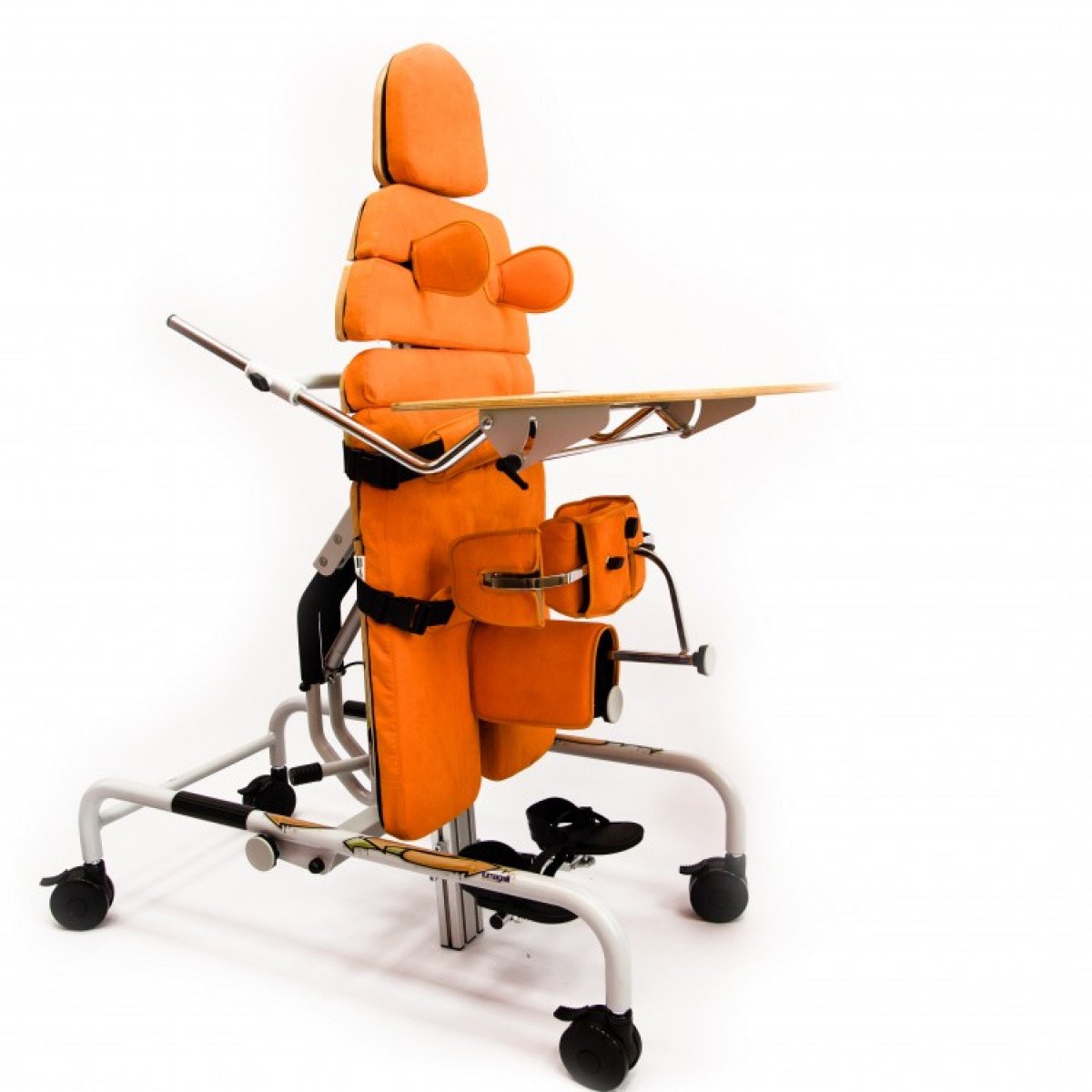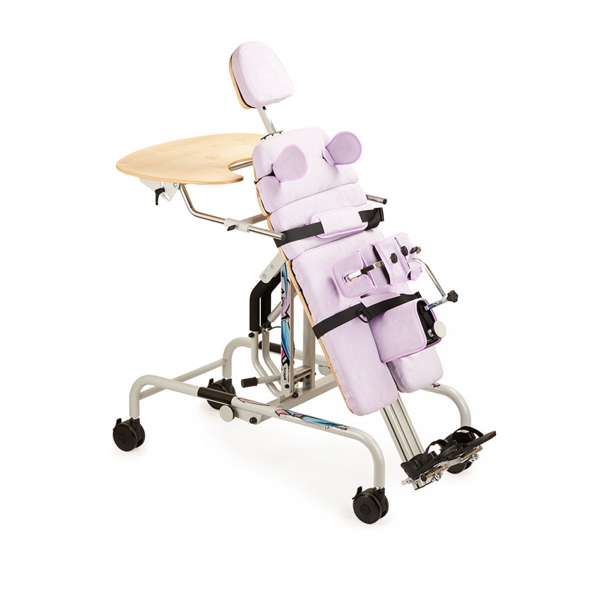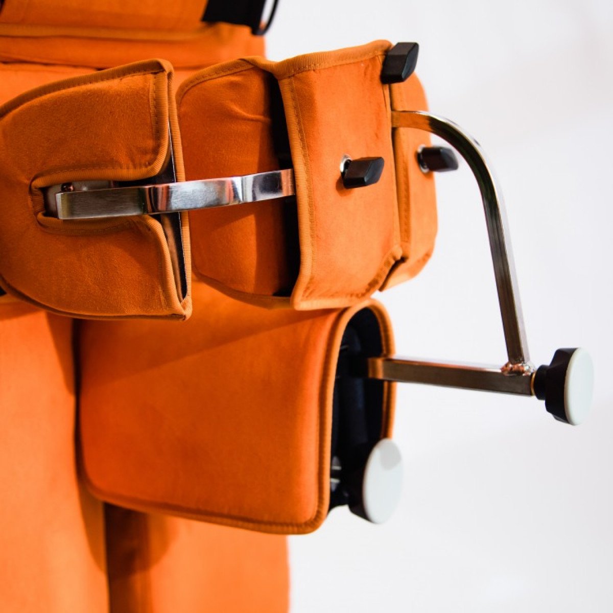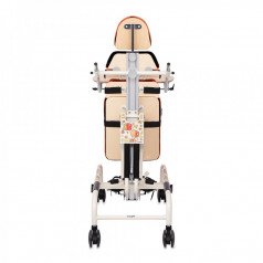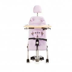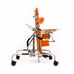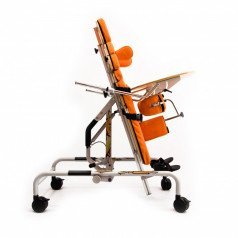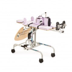 Прочная опорная рама Shifu оснащена четырьмя вращающимися колёсами, благодаря которым перемещать вертикализатор теперь легко и просто. Надежно зафиксировать его на месте поможет педальный тормоз. Платформу, которая поддерживает тело, можно удлинять с помощью специальной секции. Опорная рама и автономный подголовник имеют возможность плавной регулировки по высоте. Мягкая обивка приятная на ощупь, легко моется и не вызывает аллергии. Позиционная секция для ног оснащена регулировкой по высоте и регулирует сгибание/разгибание стоп и внутренний/внешний разворот стопы. Регулируемый абдуктор предотвратит скрещивание ног, а боковые поддержки с регулировкой по высоте и глубине удержат таз и туловище в нужном положении.