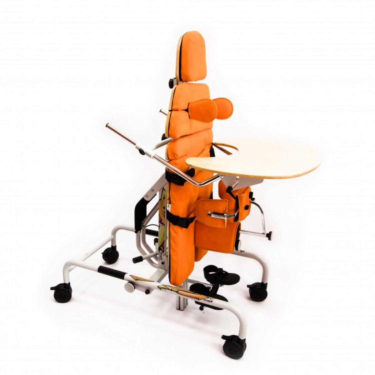 Рама занимает минимум места даже во время использования, что повышает удобство проведения реабилитационных упражнений и обеспечивает рациональное хранение. Надежная фиксация обеспечивается благодаря наличию фиксирующих ремней для туловища, таза, коленей с мягкой комфортной обивкой, которые не доставляют дискомфорта. Уникальная многоуровневая регулировка наклона из полностью горизонтального положения в вертикальное.