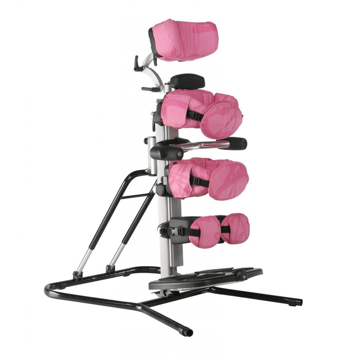 Боковые поддержки Squiggles Stand регулируются по высоте, глубине, ширине и углу наклона без применения инструмента. Легко меняется положение ребёнка лицом или спиной к вертикализатору (опора спереди или сзади) без использования дополнительных аксессуаров (убираем подголовник, разворачиваем сандалии). Выбор шасси зависит от уровня развития двигательных навыков. Отличительной особенностью является наличие функции разведения ног.