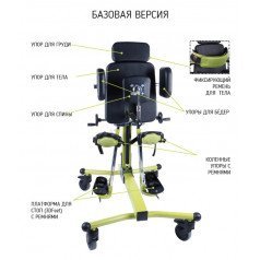 LIWCare Coco (ЛивКэр Коко) представляет собой многофункциональное устройство, которое может трансформироваться как в переднеопорный, так и в заднеопорный вертикализатор. Такая универсальность позволяет использовать этот вертикализатор в зависимости от физиологических потребностей ребёнка