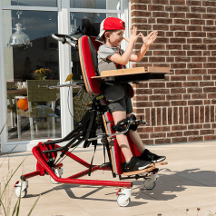 Кроме того, чтобы расширить круг общения и предоставить ребёнку возможность играть в вертикальном положении, комплект системы Lasse включает в себя терапевтический столик.