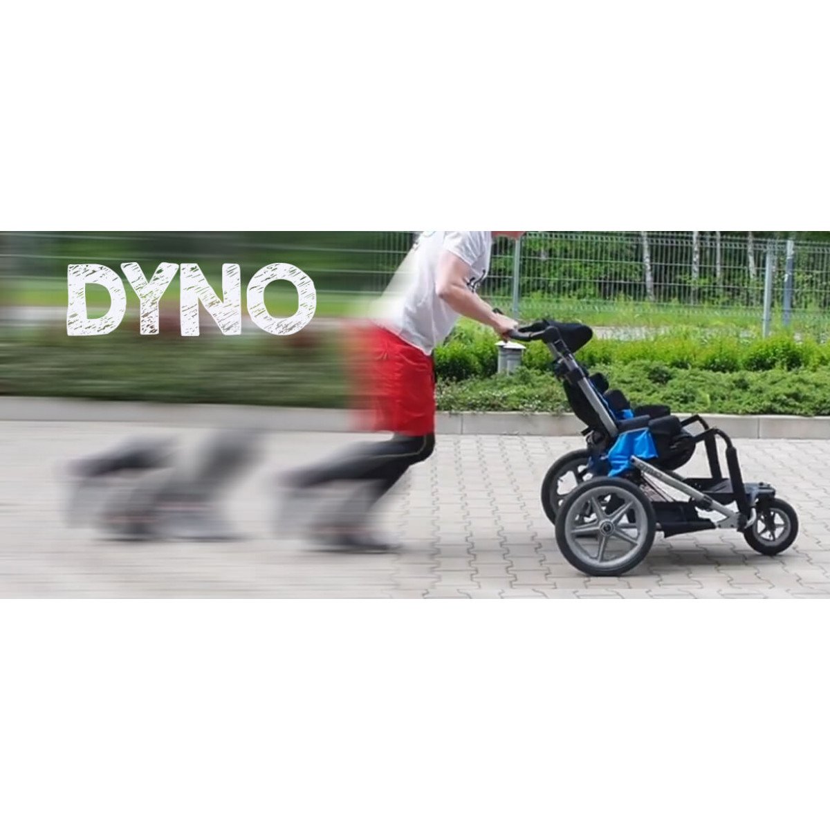 Коляска Dyno обеспечивает отличную стабилизацию верхней части тела пользователя. Боковые поддержки, пятиточечный ремень, жилет и ремни, стабилизирующие таз, обеспечивают правильную и комфортную транспортировку пользователя с сохранением пассивной коррекции дефектов осанки. Коляска Dyno предназначена как для решения повседневных задач, так и для помощи в занятии активным спортом, например бега. Это обусловлено конструкцией коляски с тремя колёсами, что делает её более маневренной, большие колёса снижают контакт с неровной поверхностью на пересечённой местности и делают ход более плавным. Но главной особенностью коляски является конструкция динамического сиденья, жёсткость отклика которого можно регулировать.
