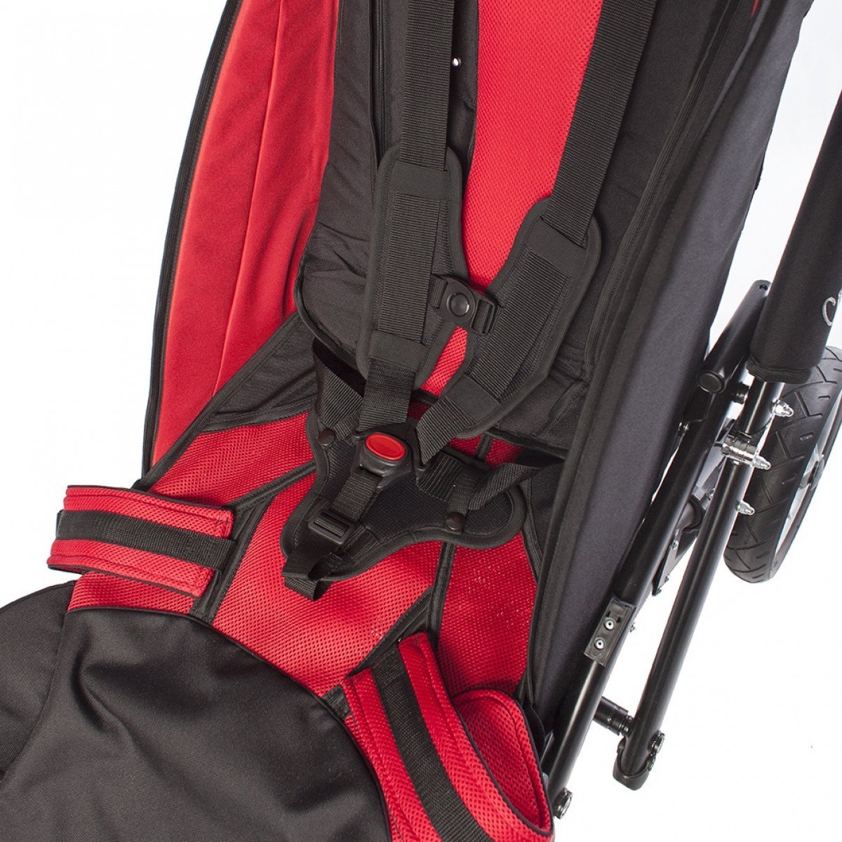 Благодаря специальной конструкции сиденья, состоящего из эластичных лент, можно регулировать жесткость. Сиденье и спинка имеют широкий диапазон регулировок по углу наклона. Рама коляски складная. Для удобной транспортировки коляски в автомобиле задние и передние колёса быстросъёмные. Для плавности хода подвеска задних колёс оснащена амортизаторами.