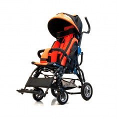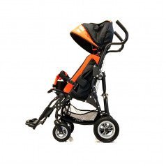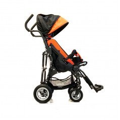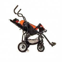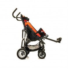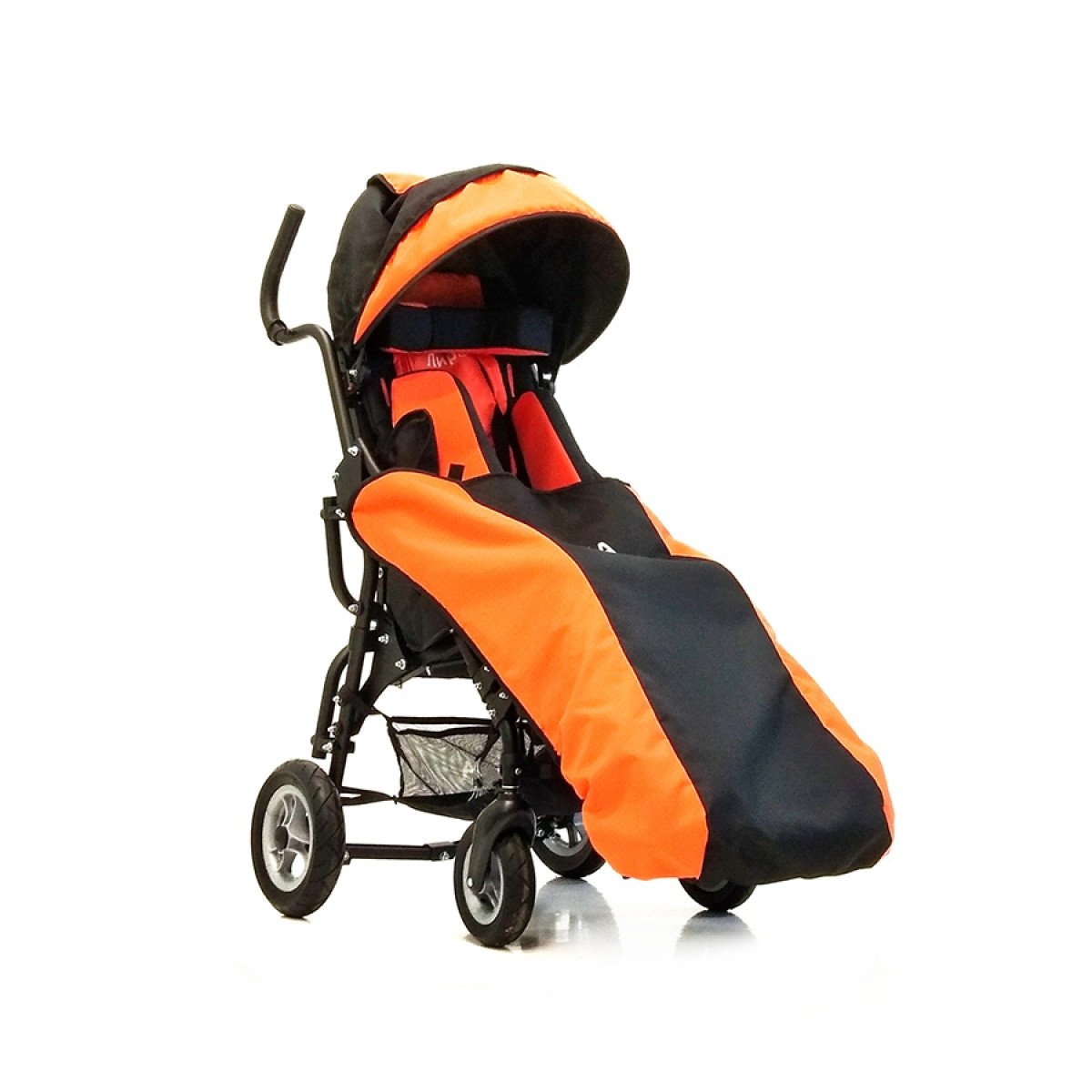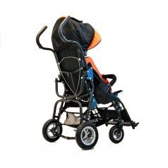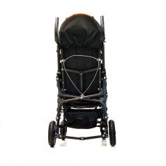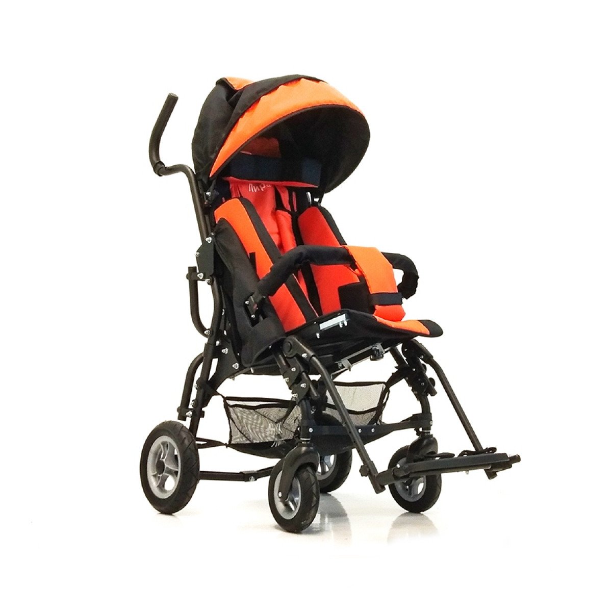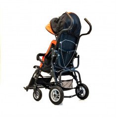 Коляска комплектуется мягким подголовником, который можно отрегулировать по высоте установки. Также имеются боковые упоры для туловища, которые служат для поддержания и формирования правильной осанки ребёнка. Абдуктор предназначен для разведения ног во время спастики. Складной навес защищает от солнца.