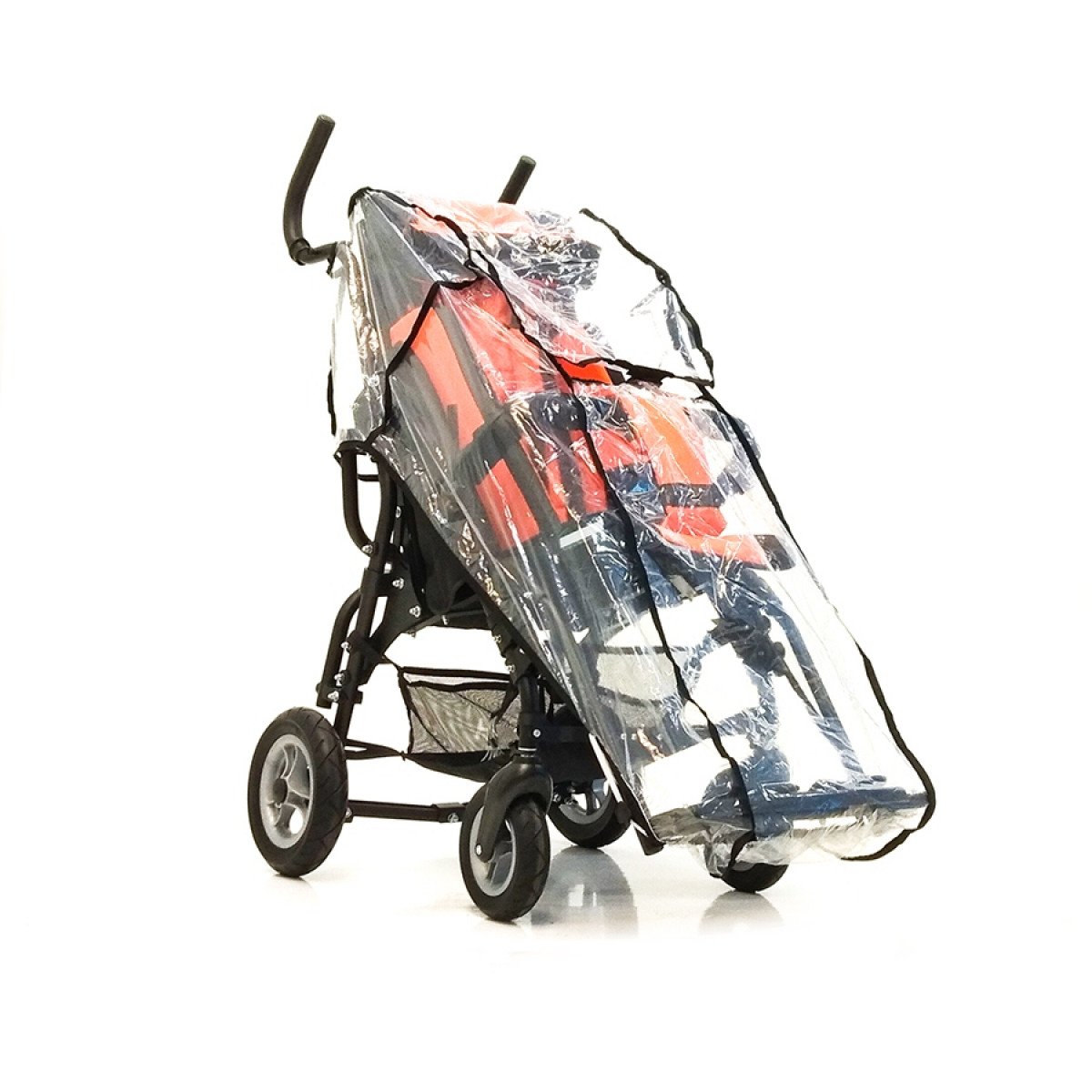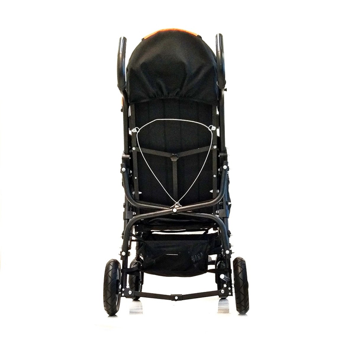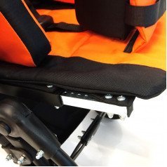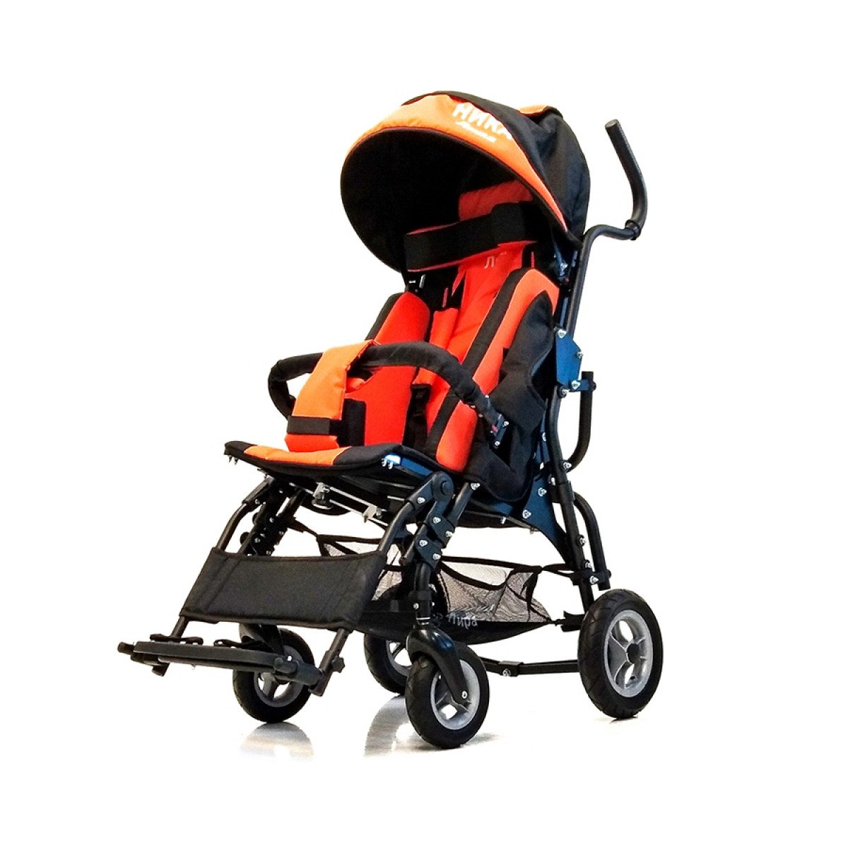 Коляска комплектуется мягким подголовником, который можно отрегулировать по высоте установки. Также имеются боковые упоры для туловища, которые служат для поддержания и формирования правильной осанки ребёнка. Абдуктор предназначен для разведения ног во время спастики. Складной навес защищает от солнца.
