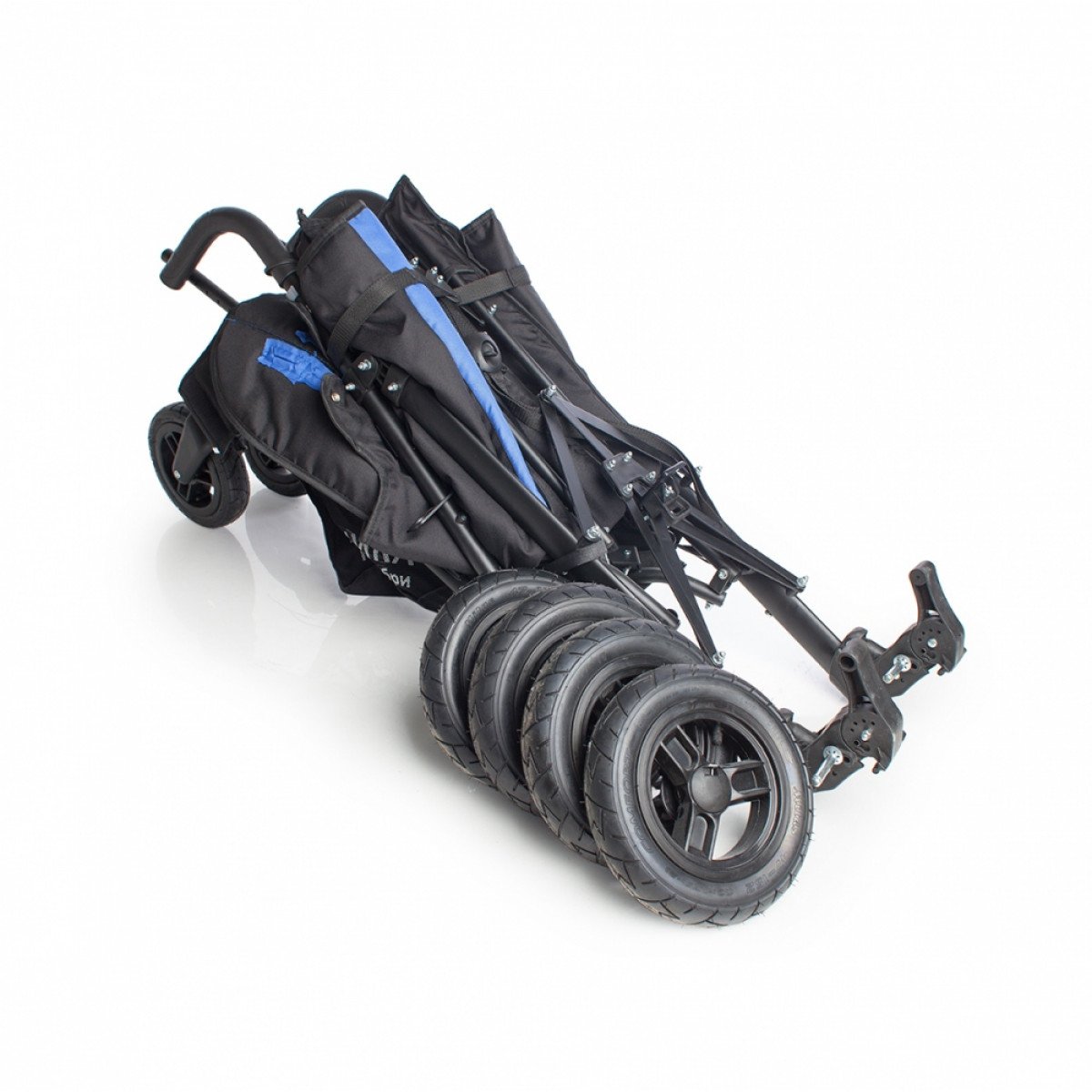 НИКА-05 оснащена быстросъёмными задними колёсами, что облегчает процесс хранения и транспортировки коляски. Широкие шины колёс обеспечивают повышенную устойчивость и отличную проходимость по различным поверхностям, включая тротуары, парки и неровные дорожки.