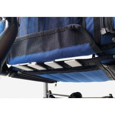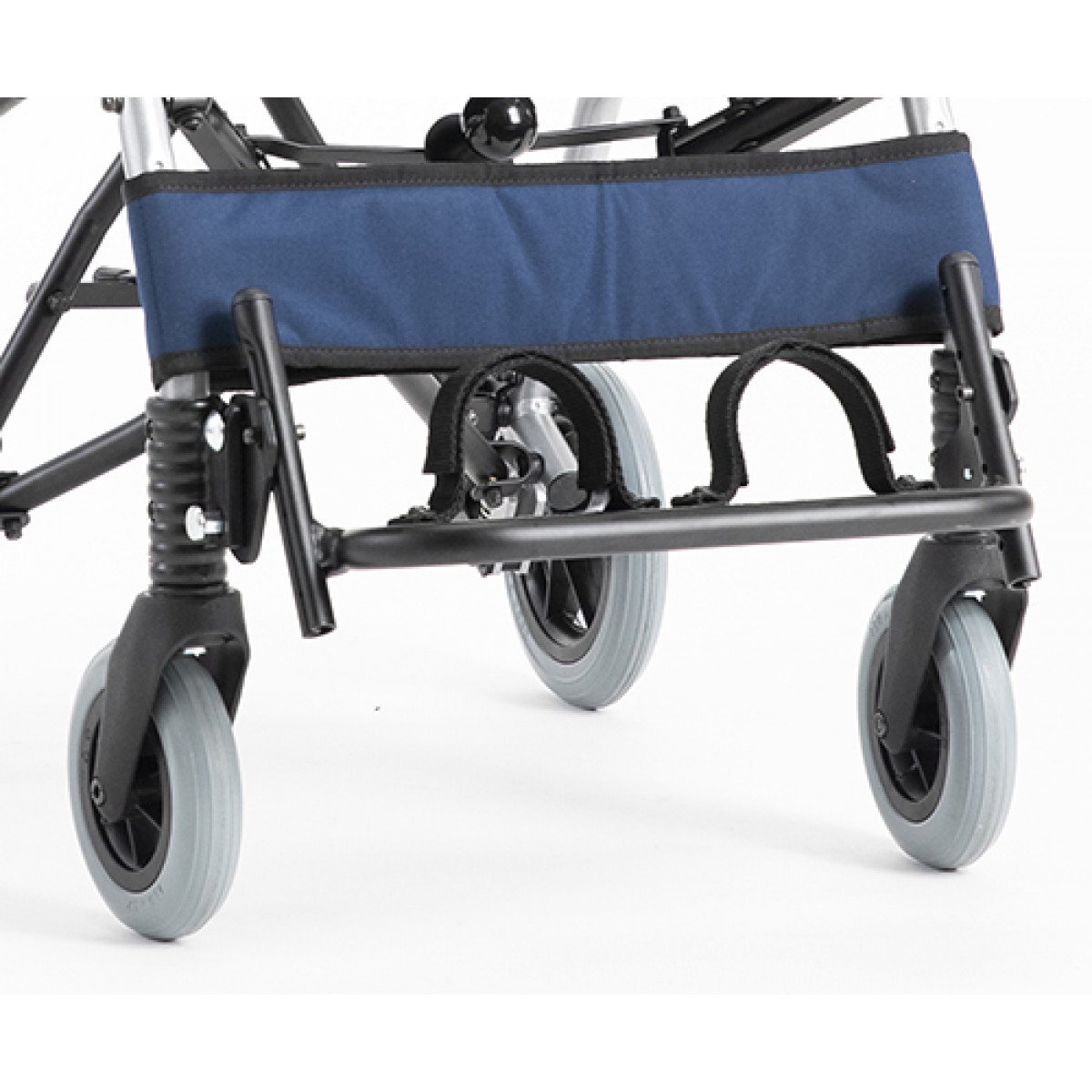 Коляска оснащена откидывающейся полужёсткой спинкой, которая имеет три положения, обеспечивая индивидуальный подход к комфорту пользователя. Родители могут легко изменять угол наклона спинки в зависимости от потребностей ребёнка. Подножка коляски также подлежит регулировке по высоте, что позволяет обеспечить оптимальное положение ног ребёнка.