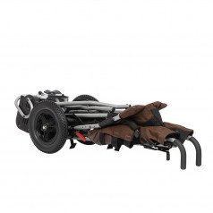 Передние колёса можно зафиксировать по направлению движения для более уверенного хода, а съёмный навес защищает от солнца и осадков. Обивка выполнена из практичного материала, за которым легко ухаживать, и доступна в нескольких цветах. Коляску можно дополнительно оснастить аксессуарами под индивидуальные потребности.