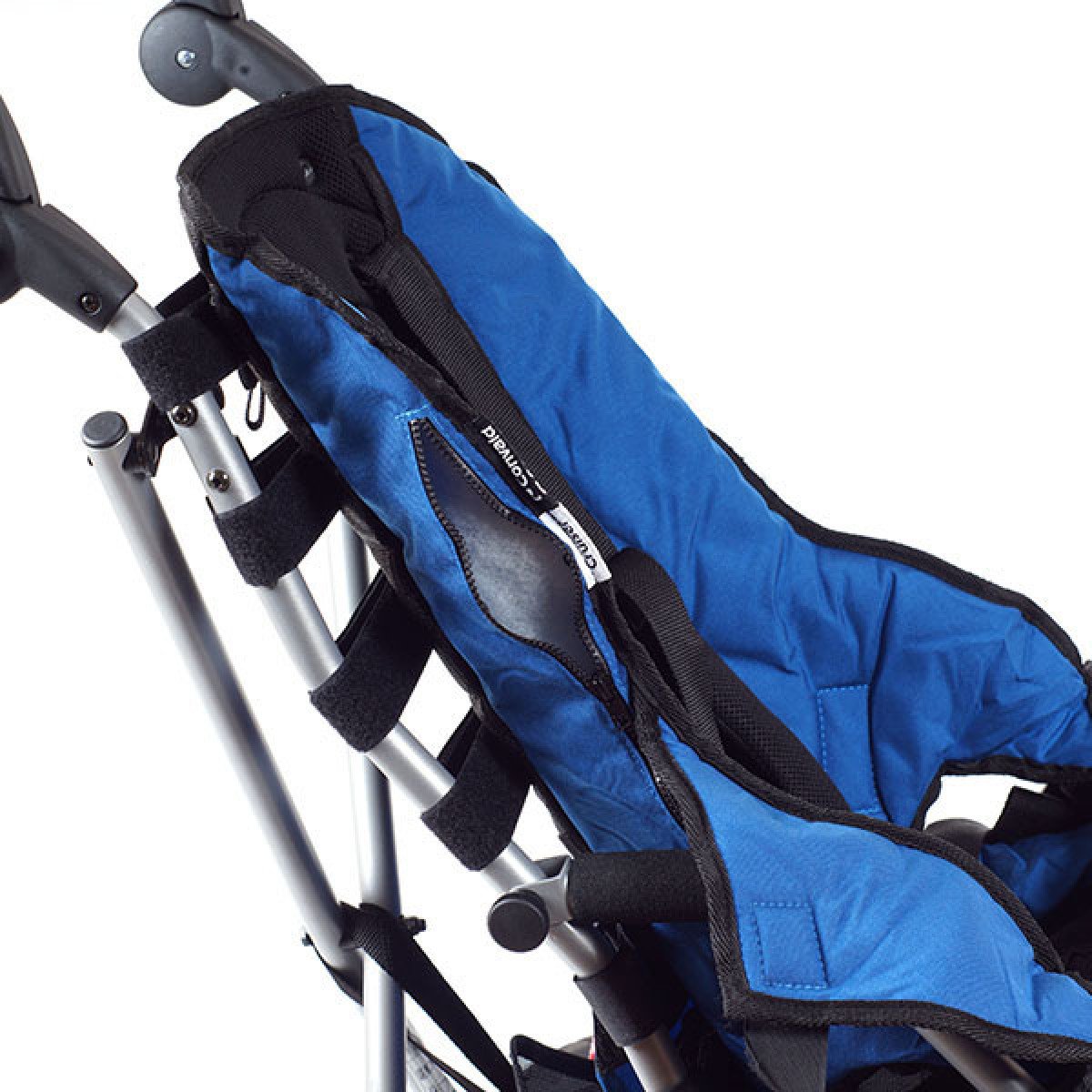 Коляска Convaid Cruiser CX доступна в пяти ярких цветах обивки на выбор. Съёмный и регулируемый по высоте навес дополнен прозрачным окошком, что обеспечивает дополнительную защиту от солнца и погодных условий, одновременно позволяя вам контролировать состояние ребёнка.