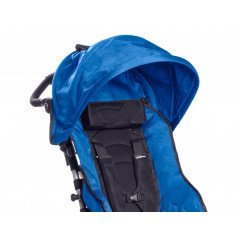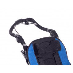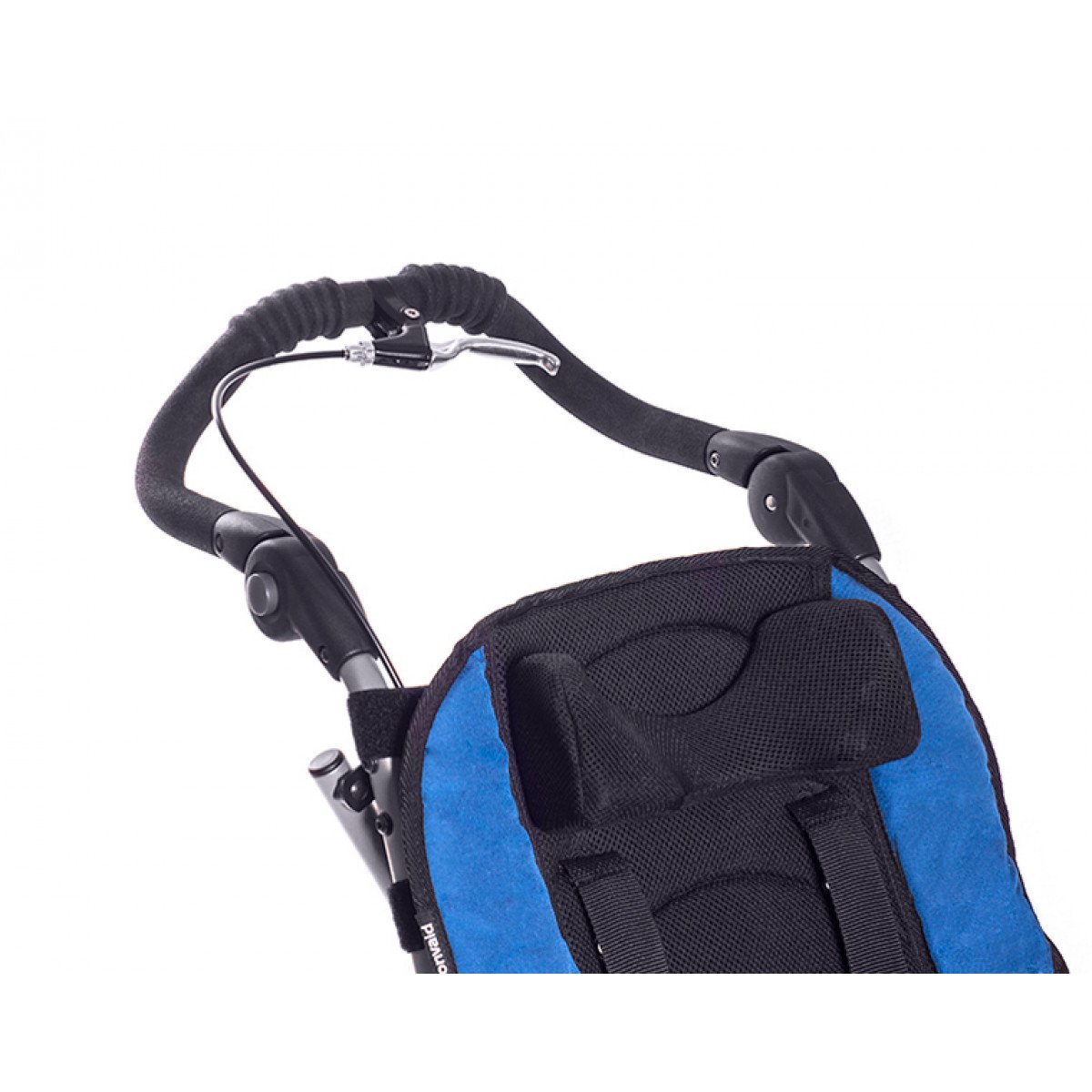 Угол наклона сидения составляет 30°, что способствует снижению нагрузки на позвоночник, спинные мышцы и внутренние органы ребёнка. Встроенный тормоз, предназначенный для сопровождающего лица, обеспечивает безопасность. Армированная обивка спинки и сиденья обеспечивает защиту от износа и удобно поддерживает ребёнка во время поездки. Контурный подголовник также является важным аспектом конструкции. Он регулируется по высоте, что позволяет подстраивать его под рост ребёнка без ограничения обзора.