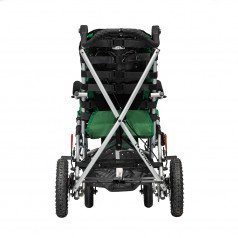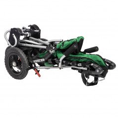Коляска оборудована пневматическими колёсами, которые значительно улучшают проходимость по различным покрытиям. Передние колёса можно фиксировать по направлению движения, что усиливает устойчивость коляски и позволяет легче маневрировать в сложных условиях.