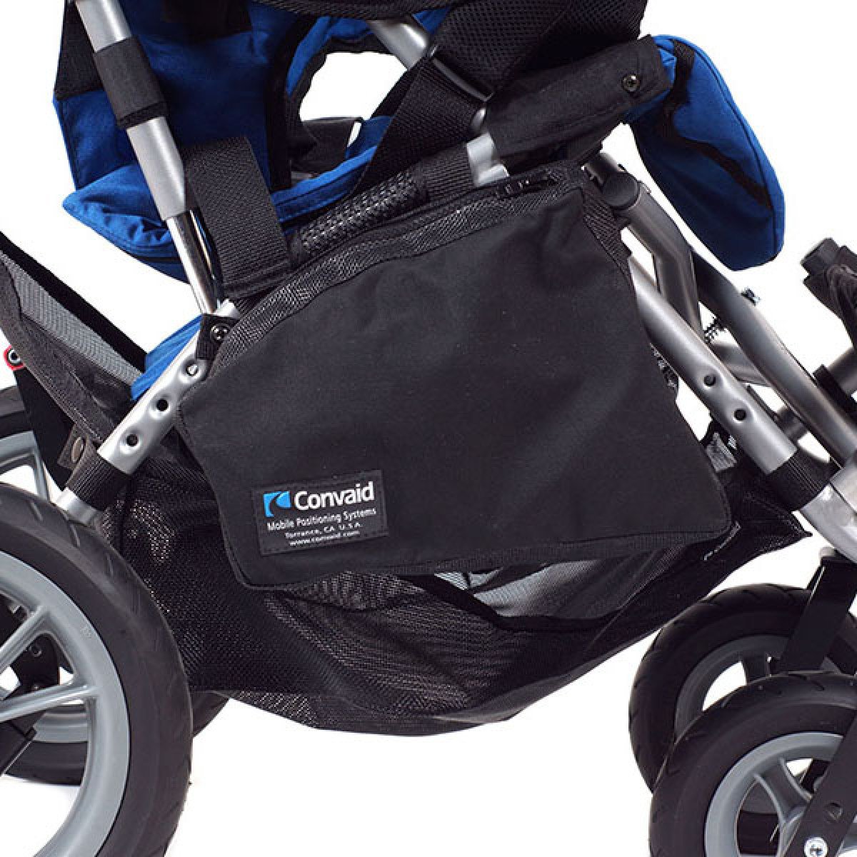 (сиденье, система самонатяжения сиденья Self-Tensio, тормоз на ручке-толкателе, 5-точечный ремень, удлинитель спинки (SC18), откидные подлокотники, опоры для стоп регулируемые по глубине, контурный подголовник, корзина, блокировка передних колёс, опрокидыватель, навес, анатомическая спинка, армированная обивка сиденья и спинки, колёса с пневматическими шинами) - Convaid Cruiser CX Комплект 2