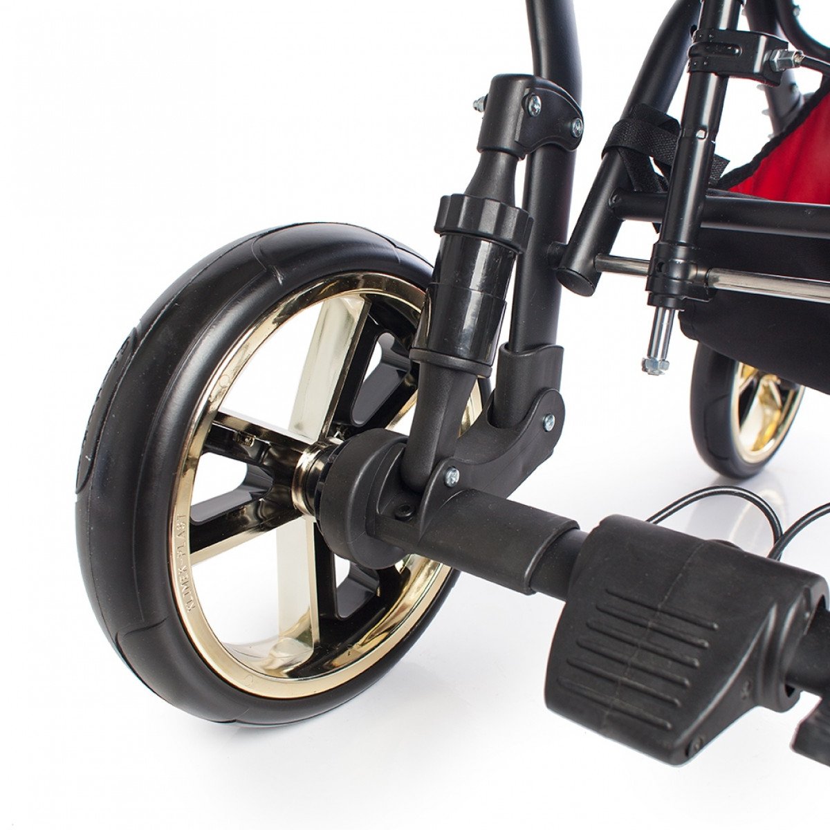 Колеса оснащены широкими шинами, обеспечивающими повышенную устойчивость и проходимость при прогулках с ребёнком. Фиксаторы передних колёс позволяют облегчить использование коляски в зимний период и при езде по неровным поверхностям. Для плавности хода задняя подвеска оснащена амортизаторами. Кресло-коляска обеспечивает ребёнку комфорт при прогулке и оказывает положительный эффект на его реабилитацию.