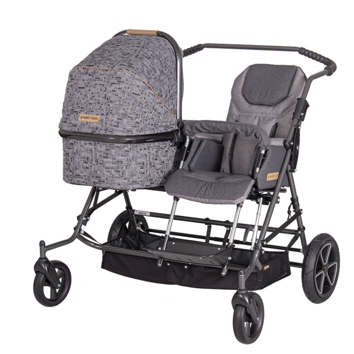 Patron Tom 4 Classic Duo-Combi (Патрон Том 4 Классик Дуо-Комби) — это универсальная прогулочная коляска для семей с двумя детьми, которая сочетает реабилитационное сиденье и люльку для новорождённого. Модель позволяет комфортно гулять с детьми разного возраста, включая использование ТСР с самого рождения.