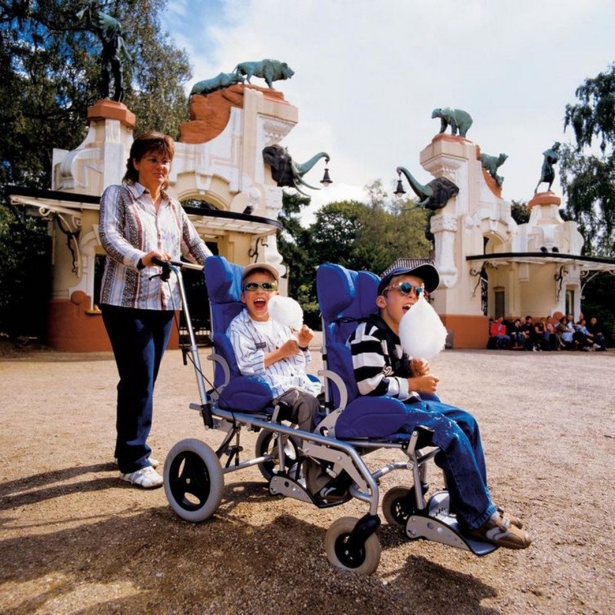 Прогулочное шасси Кимба Инлайн подходит для перевозки двоих детей, нуждающихся в поддержании правильной позы во время прогулок.
