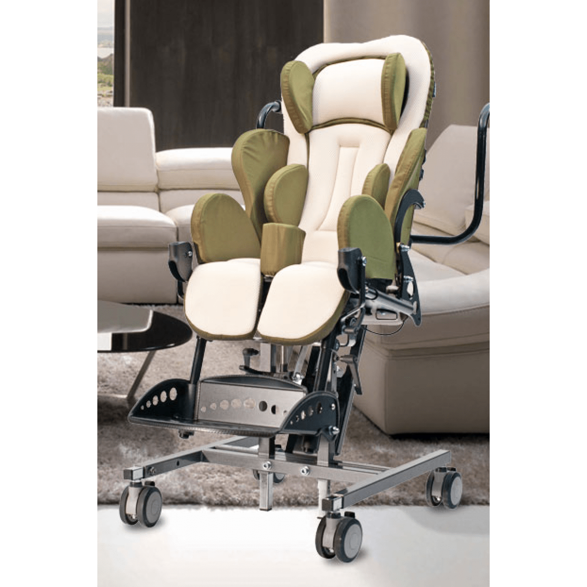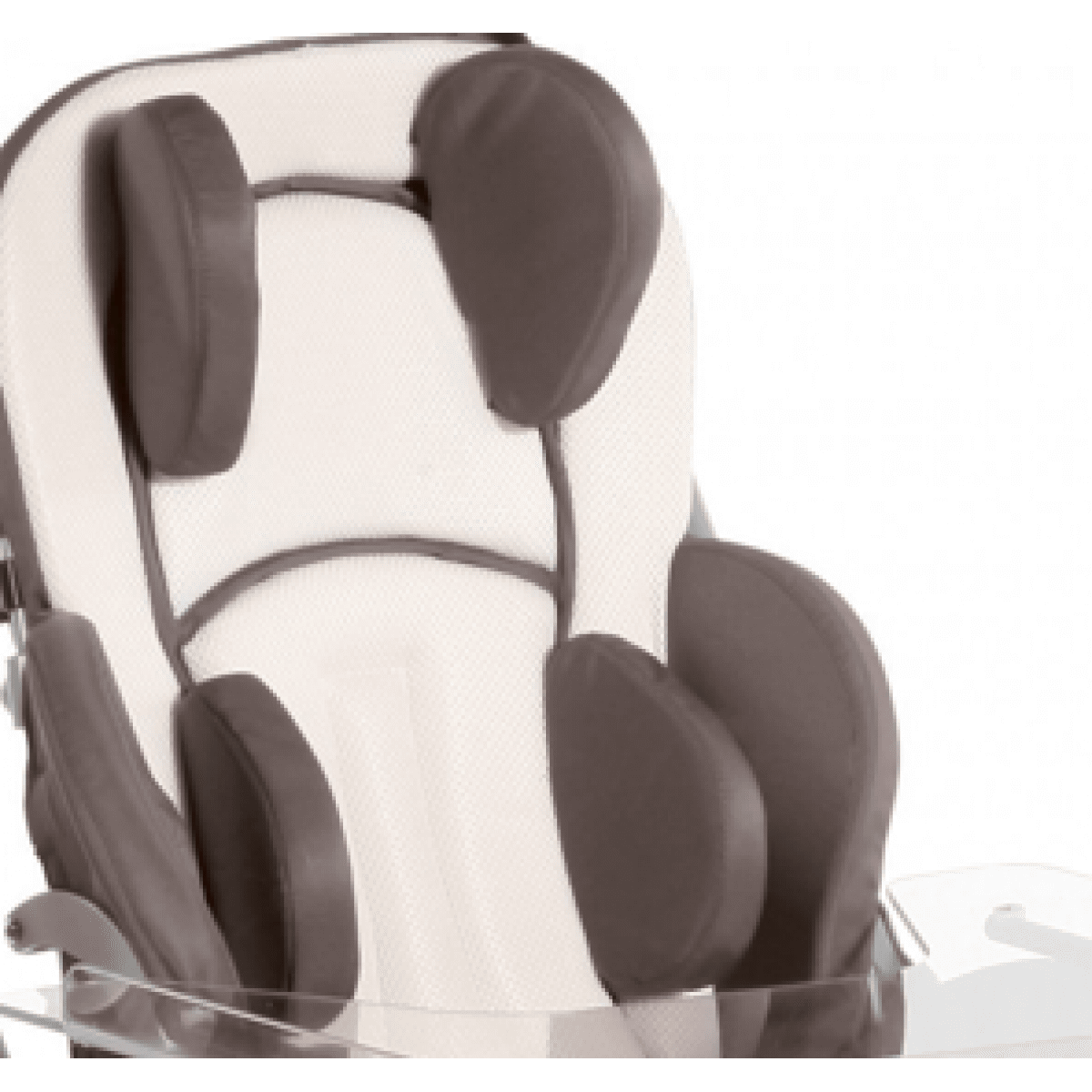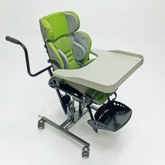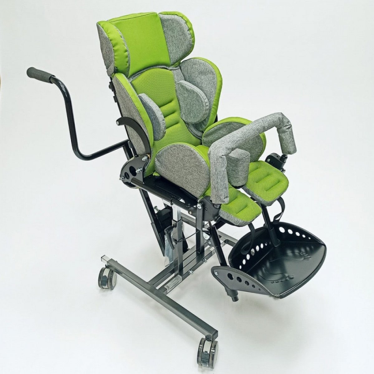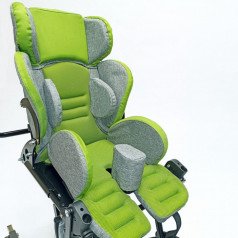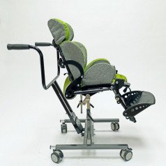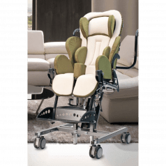 Сиденье, комнатное шасси, спинка MPS (короткая), съёмный регулируемый по углу наклона подголовник (контурный /трёхсекционный), боковые поддержки с функцией отведения анатомические, абдуктор, майка неопрен + тазовый фиксатор неопрен, ремни на стопы, столик.