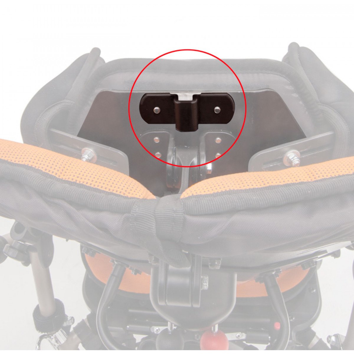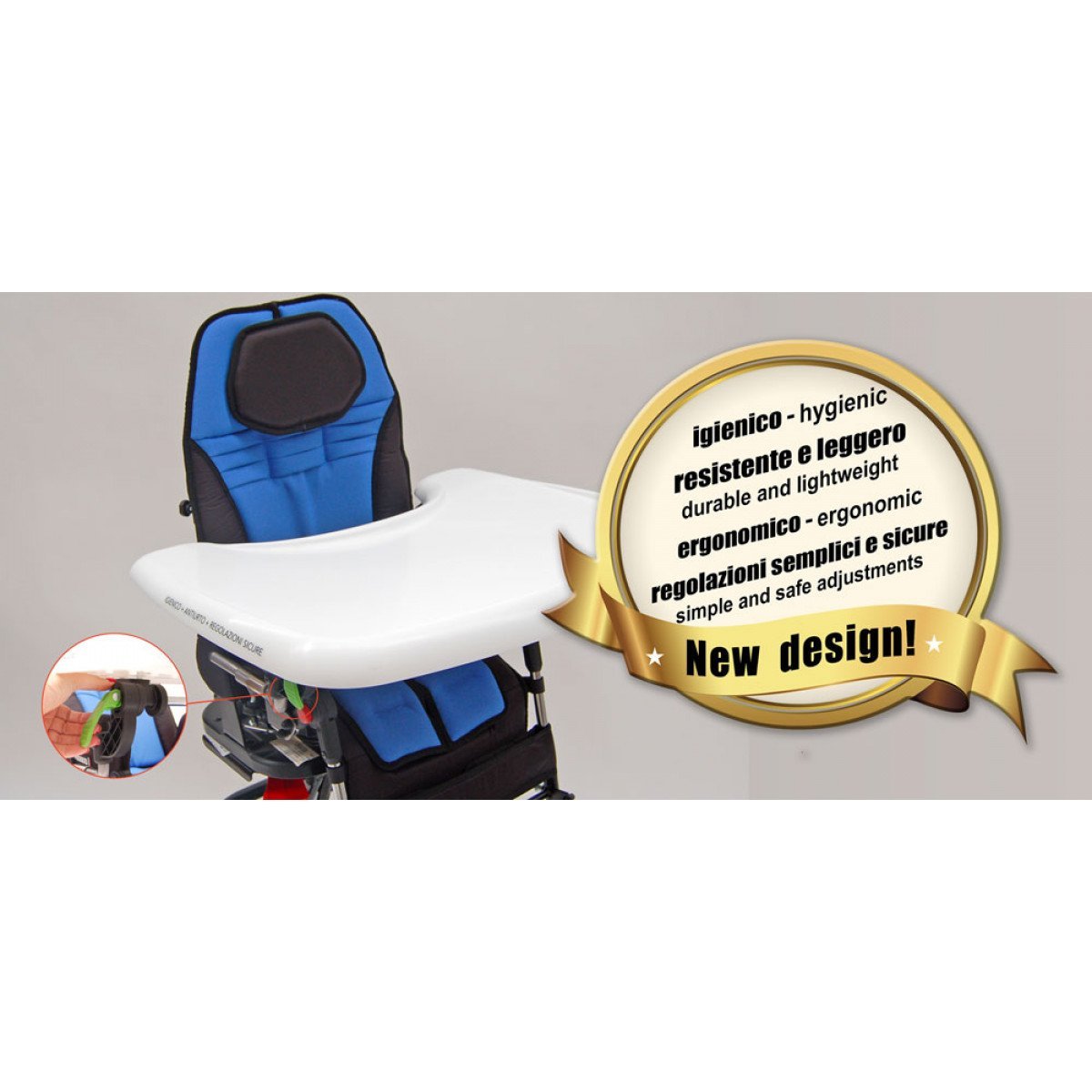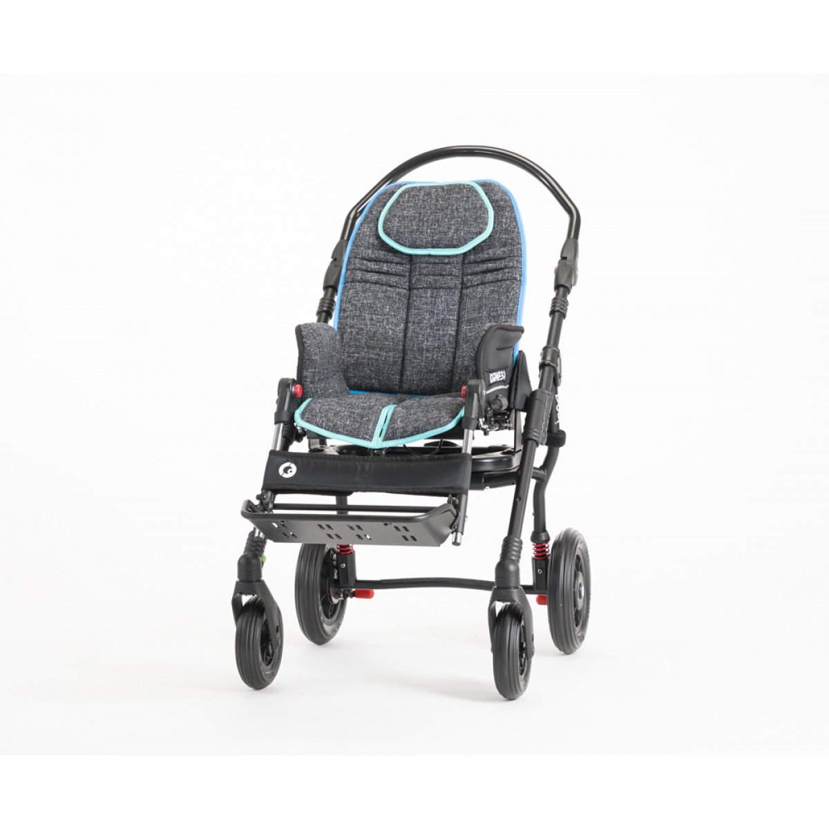 Жёсткая спинка с наклоном до 40° регулируется в высоту до 10 см. (размеры 1-2) и до 15 см. (размеры 3-4), соответствуя физиологическому изгибу тела. Откидная подножка имеет регулировку сгибания-разгибания, а опора для ног может настраиваться по высоте и углу, соответствуя физиологическому изгибу коленей. Встроенный подголовник, находящийся в спинке кресла, обеспечивает поддержание головы ребёнка во время любых изменений в положении сиденья и спинки.