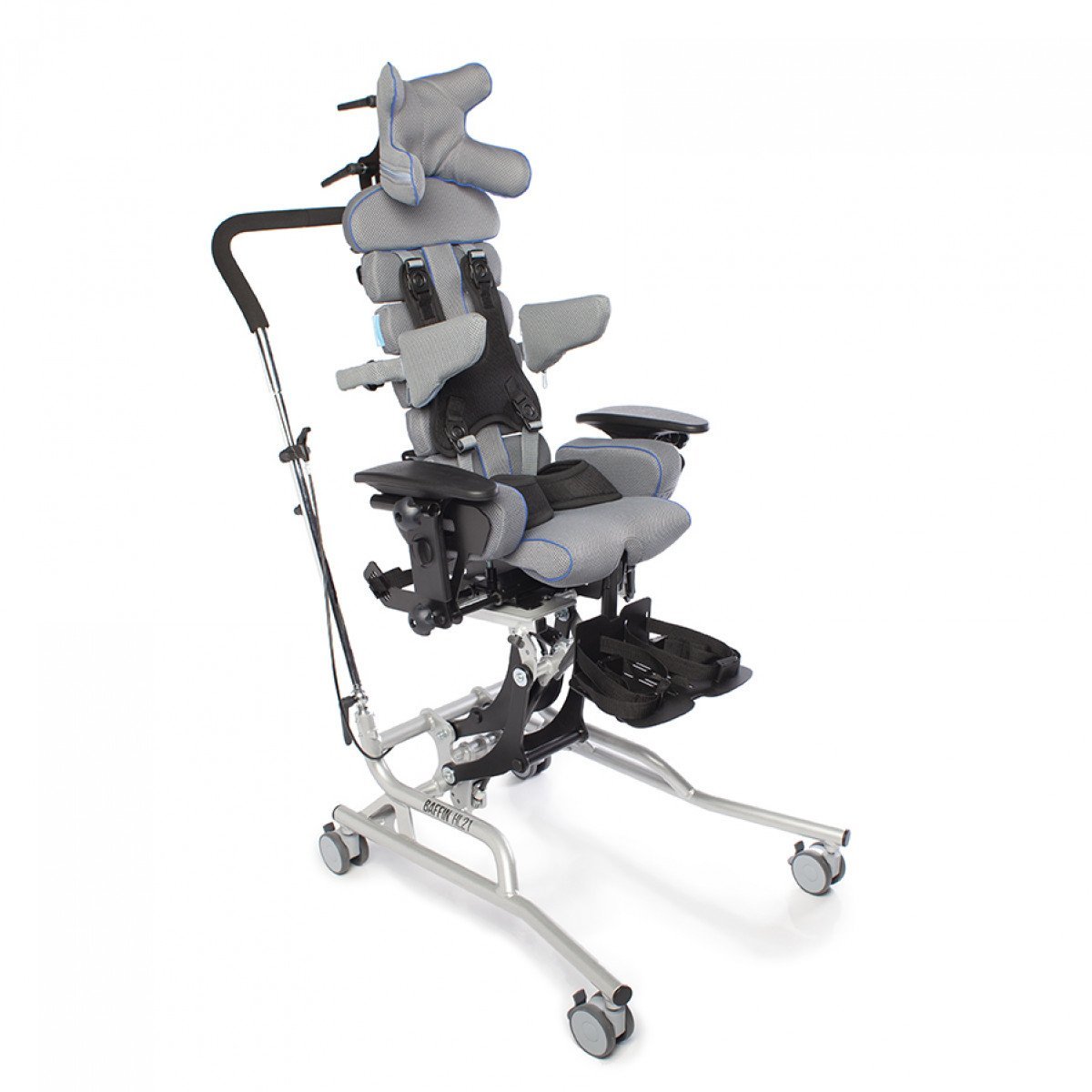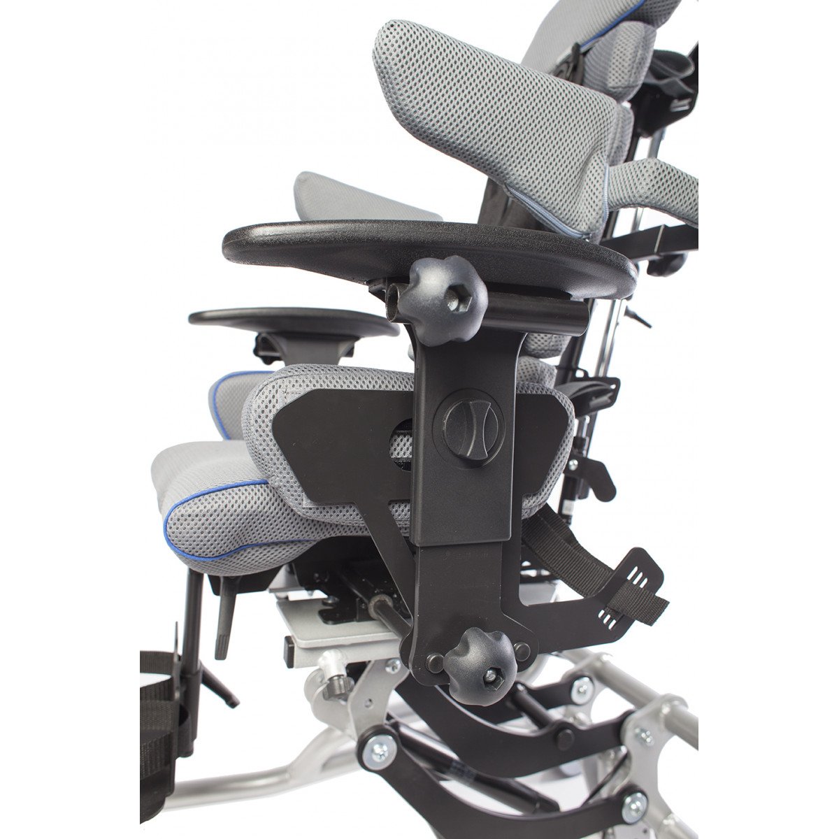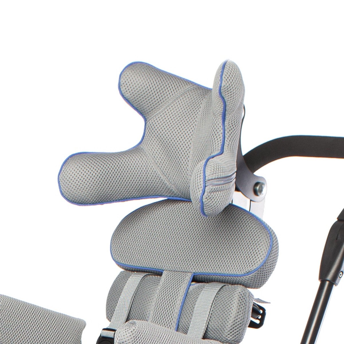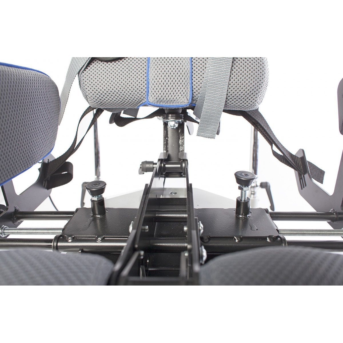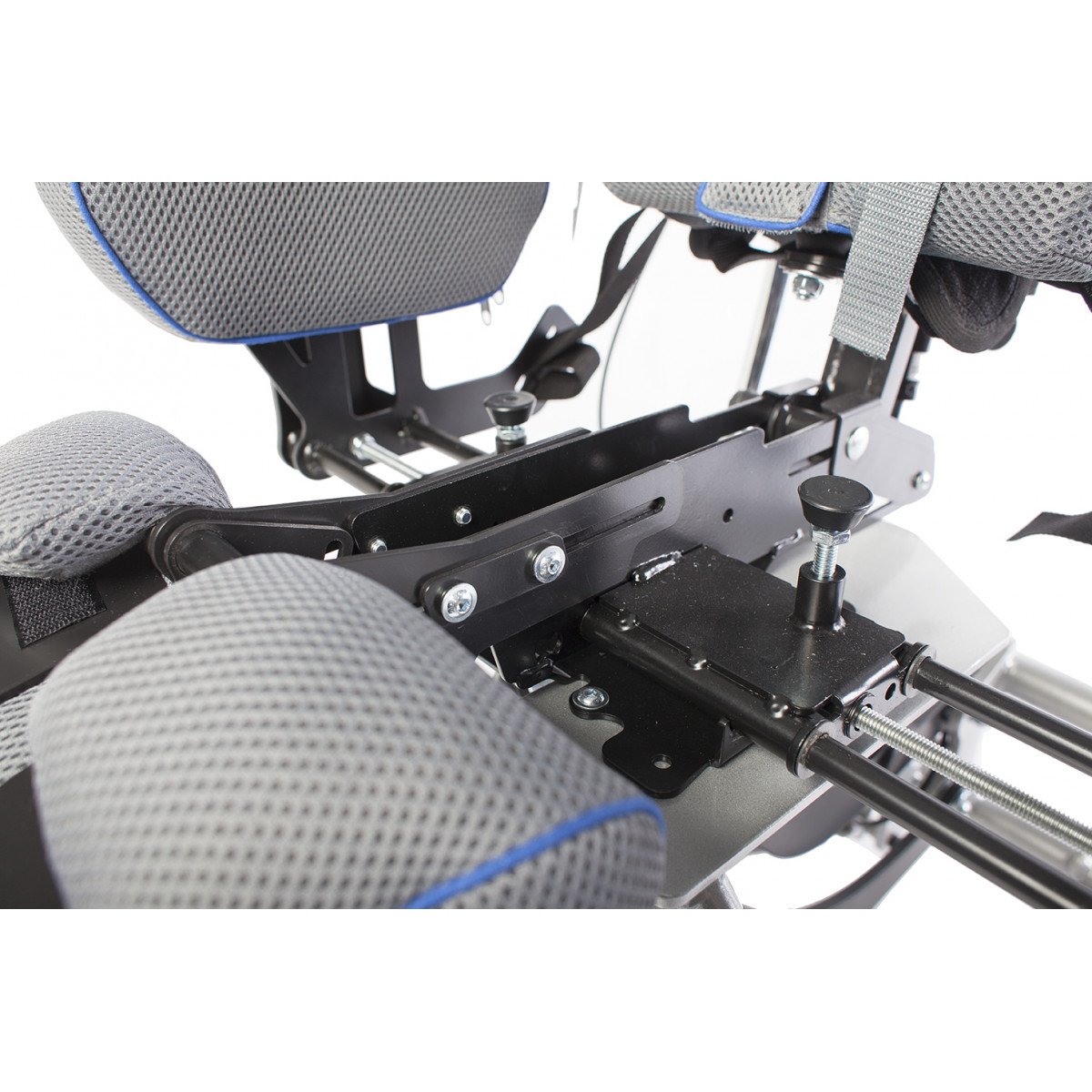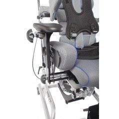 Кресло оснащено подголовником, который можно регулировать по высоте и углу наклона, позволяя выбрать оптимальное положение для головы. Регулируемые подлокотники помогают поддерживать руки ребёнка в удобном положении, а боковые упоры для туловища предотвращают смещение и обеспечивают дополнительную безопасность в процессе использования. Упоры для коррекции положения таза играют важную роль в правильном распределении веса, что минимизирует риск возникновения дискомфорта и улучшает общую стабильность.