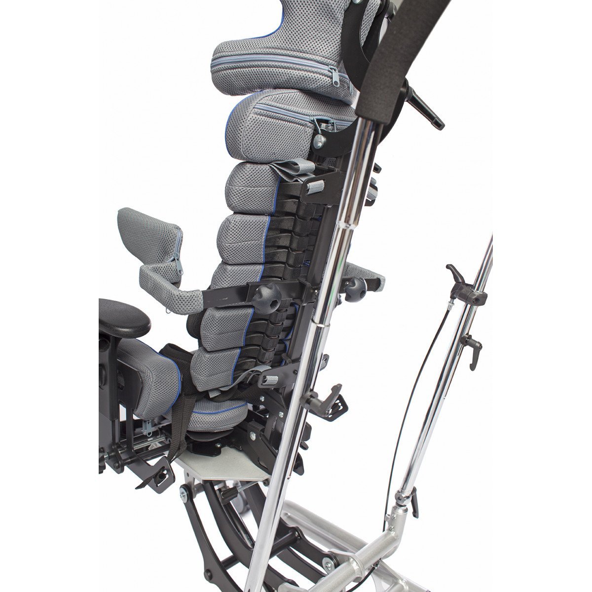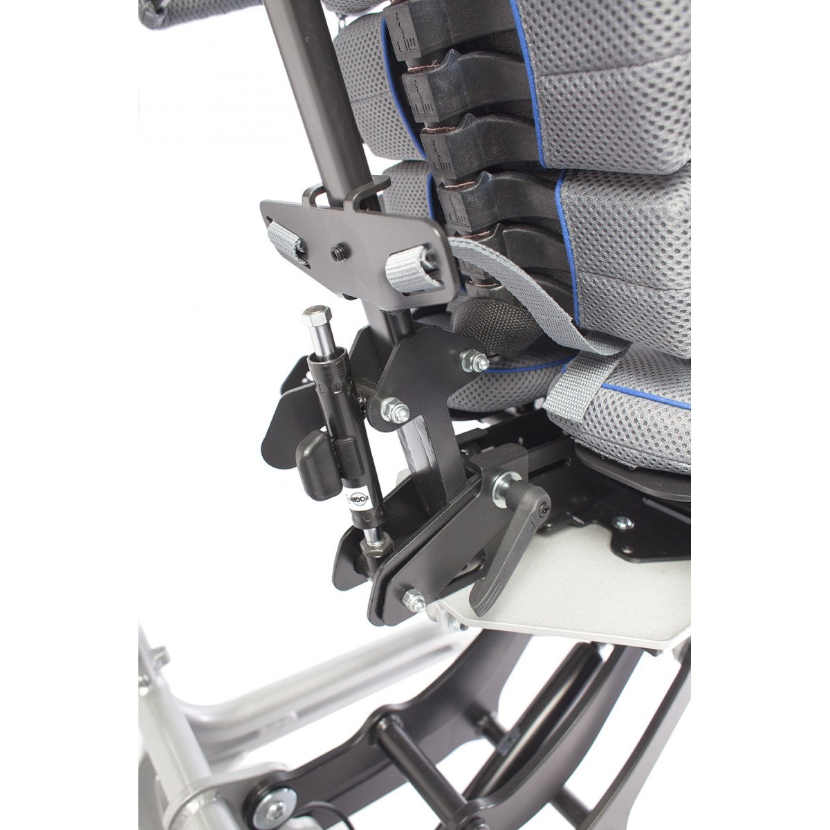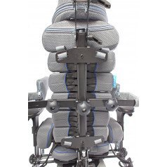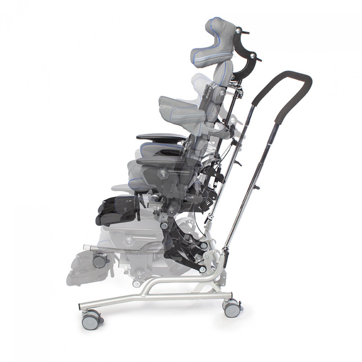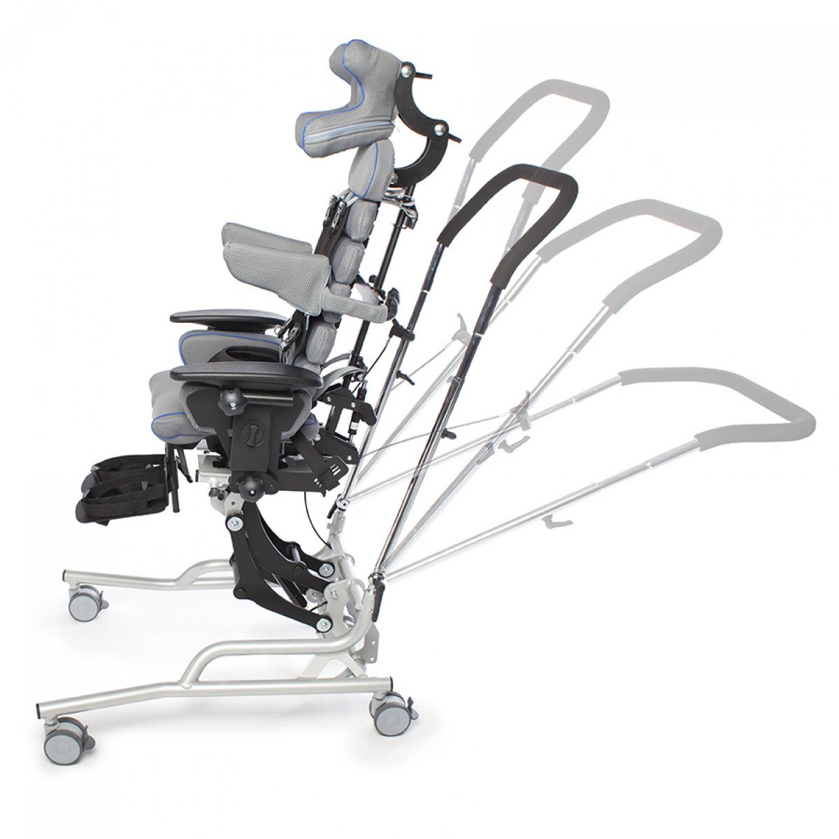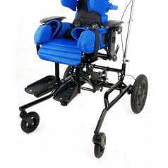 Кресло оснащено подголовником, который можно регулировать по высоте и углу наклона, позволяя выбрать оптимальное положение для головы. Регулируемые подлокотники помогают поддерживать руки ребёнка в удобном положении, а боковые упоры для туловища предотвращают смещение и обеспечивают дополнительную безопасность в процессе использования. Упоры для коррекции положения таза играют важную роль в правильном распределении веса, что минимизирует риск возникновения дискомфорта и улучшает общую стабильность.