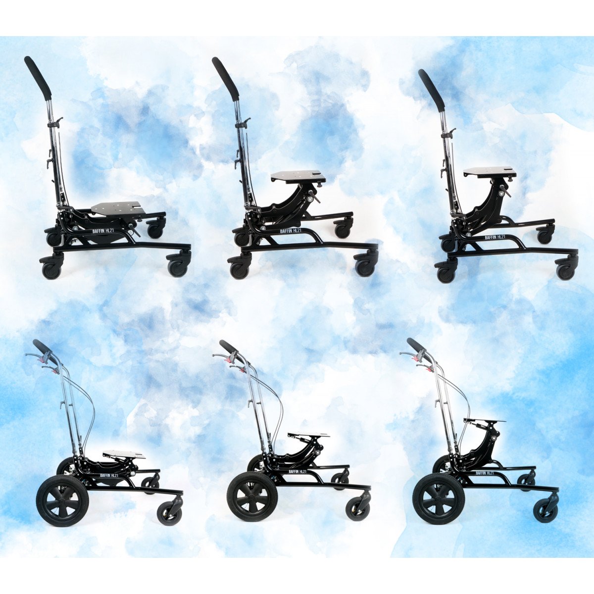 Кресло Baffin neoSIT HL доступно в трех размерах: S, M и L, что делает его подходящим для детей с ростом от 85 до 135 см. Кроме того, оно может поставляться с различными типами рам-шасси HL21: