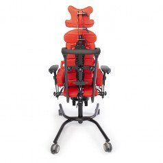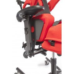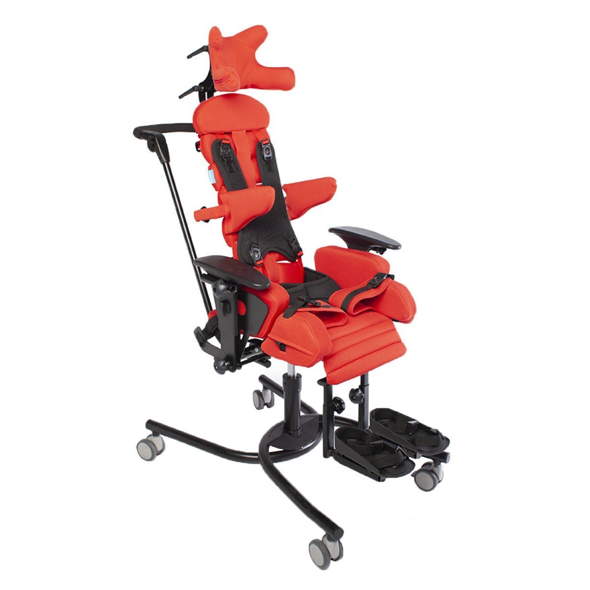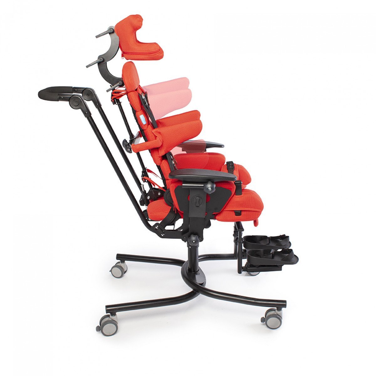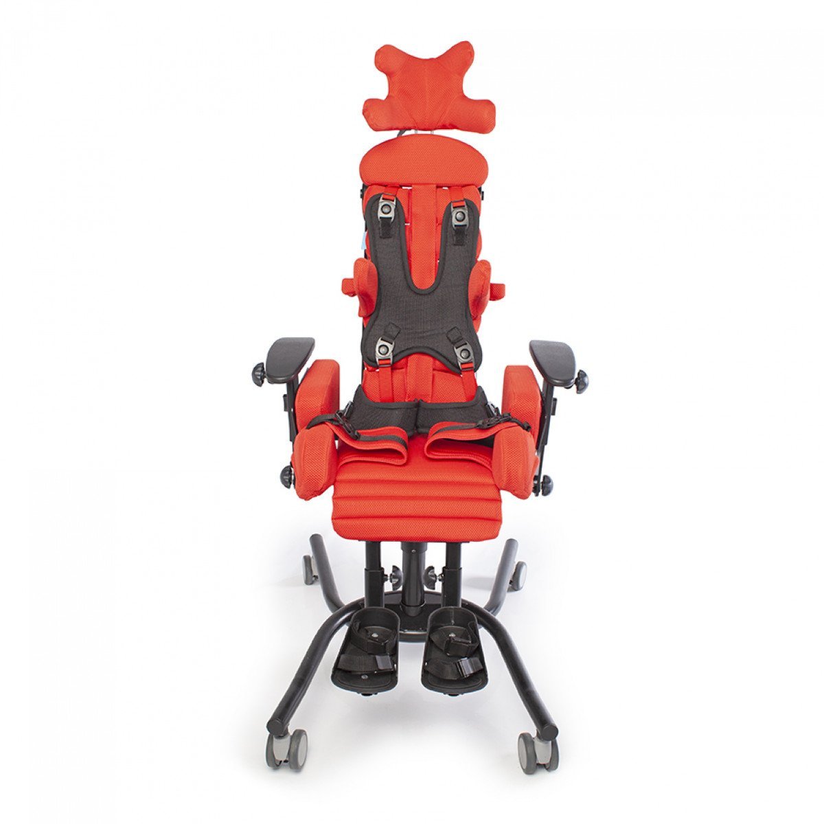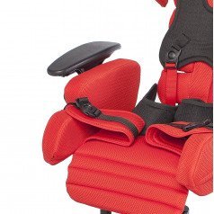 Кресло оснащено подголовником, который можно регулировать по высоте и углу наклона, позволяя выбрать оптимальное положение для головы. Регулируемые подлокотники помогают поддерживать руки ребёнка в удобном положении, а боковые упоры для туловища предотвращают смещение и обеспечивают дополнительную безопасность в процессе использования. Упоры для коррекции положения таза играют важную роль в правильном распределении веса, что минимизирует риск возникновения дискомфорта и улучшает общую стабильность.