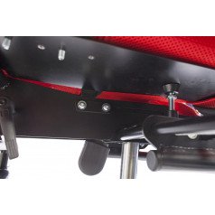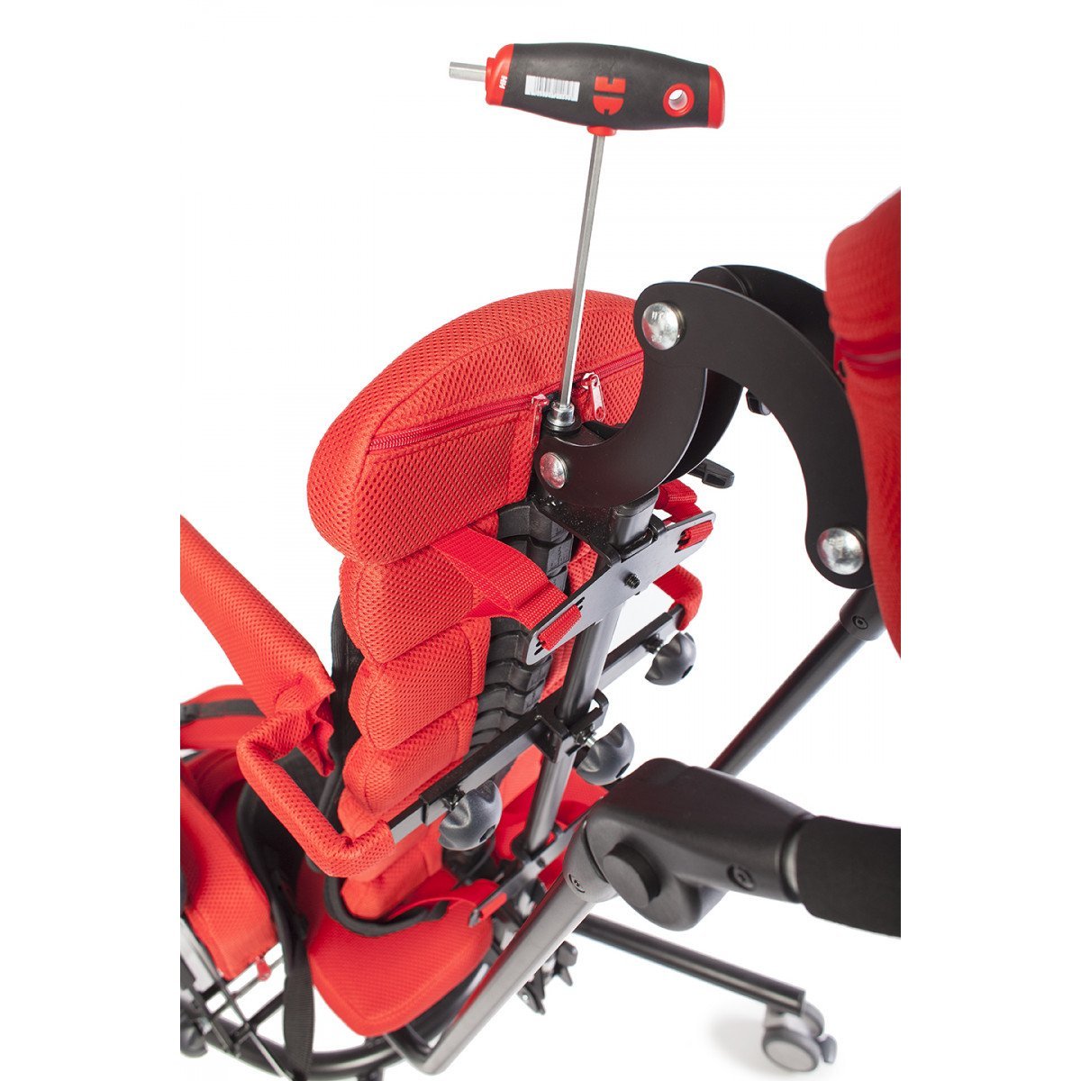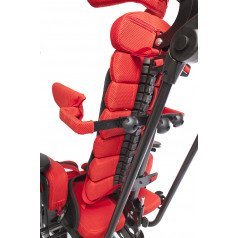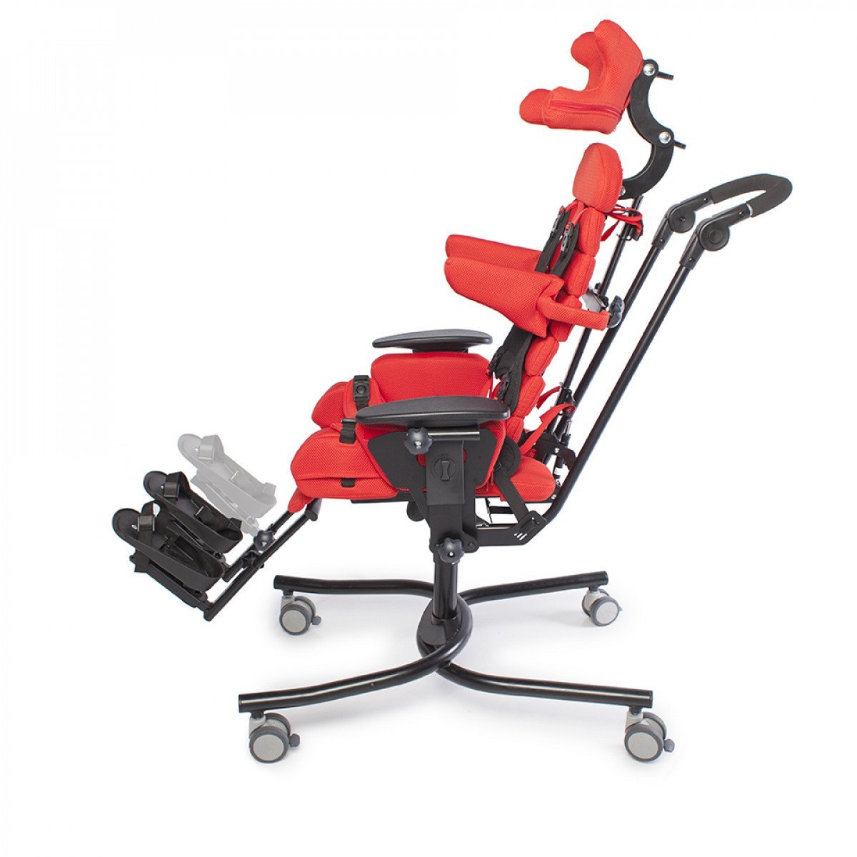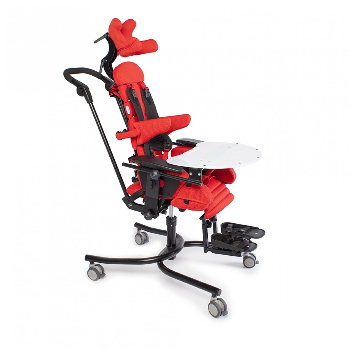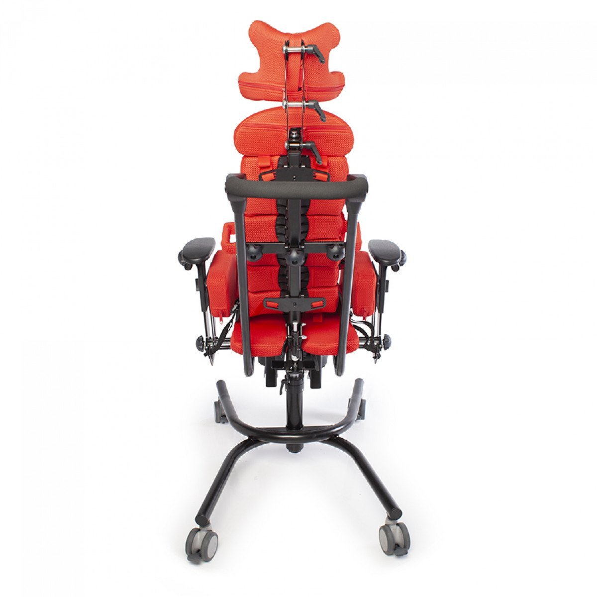Кресло оснащено подголовником, который можно регулировать по высоте и углу наклона, позволяя выбрать оптимальное положение для головы. Регулируемые подлокотники помогают поддерживать руки ребёнка в удобном положении, а боковые упоры для туловища предотвращают смещение и обеспечивают дополнительную безопасность в процессе использования. Упоры для коррекции положения таза играют важную роль в правильном распределении веса, что минимизирует риск возникновения дискомфорта и улучшает общую стабильность.