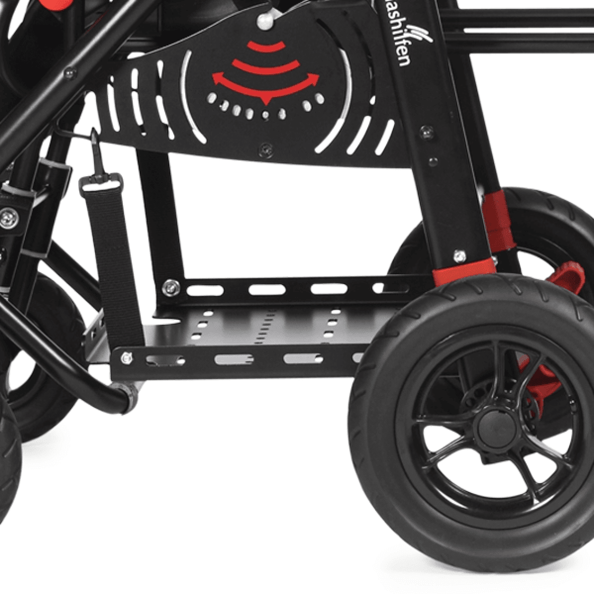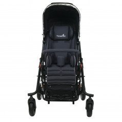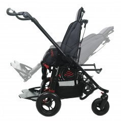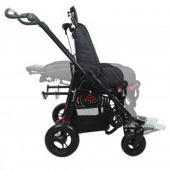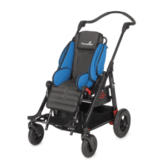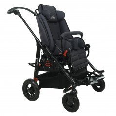 Одним из преимуществ модели является её лёгкость и компактность в сложенном состоянии, что делает её удобной для транспортировки. Коляска доступна в двух различных размерах и предлагает пять цветов обивки на выбор. Она также оснащена специальным эксцентриковым рычагом, который позволяет без труда регулировать угол наклона подножки. Мягкая подвеска, встроенная в раму коляски, эффективно поглощает вибрации, что обеспечивает плавный и комфортный ход, даже по неровным поверхностям.