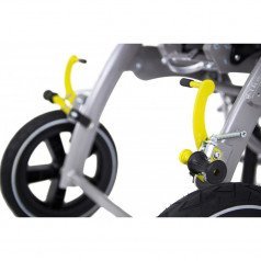 Основные элементы конструкции — рама и сидение — выполнены из прочного алюминия, что обеспечивает не только надёжность, но и лёгкость самого устройства. Шасси коляски оснащено продвинутыми амортизаторами, что обеспечивает плавный и комфортный ход по различным поверхностям.